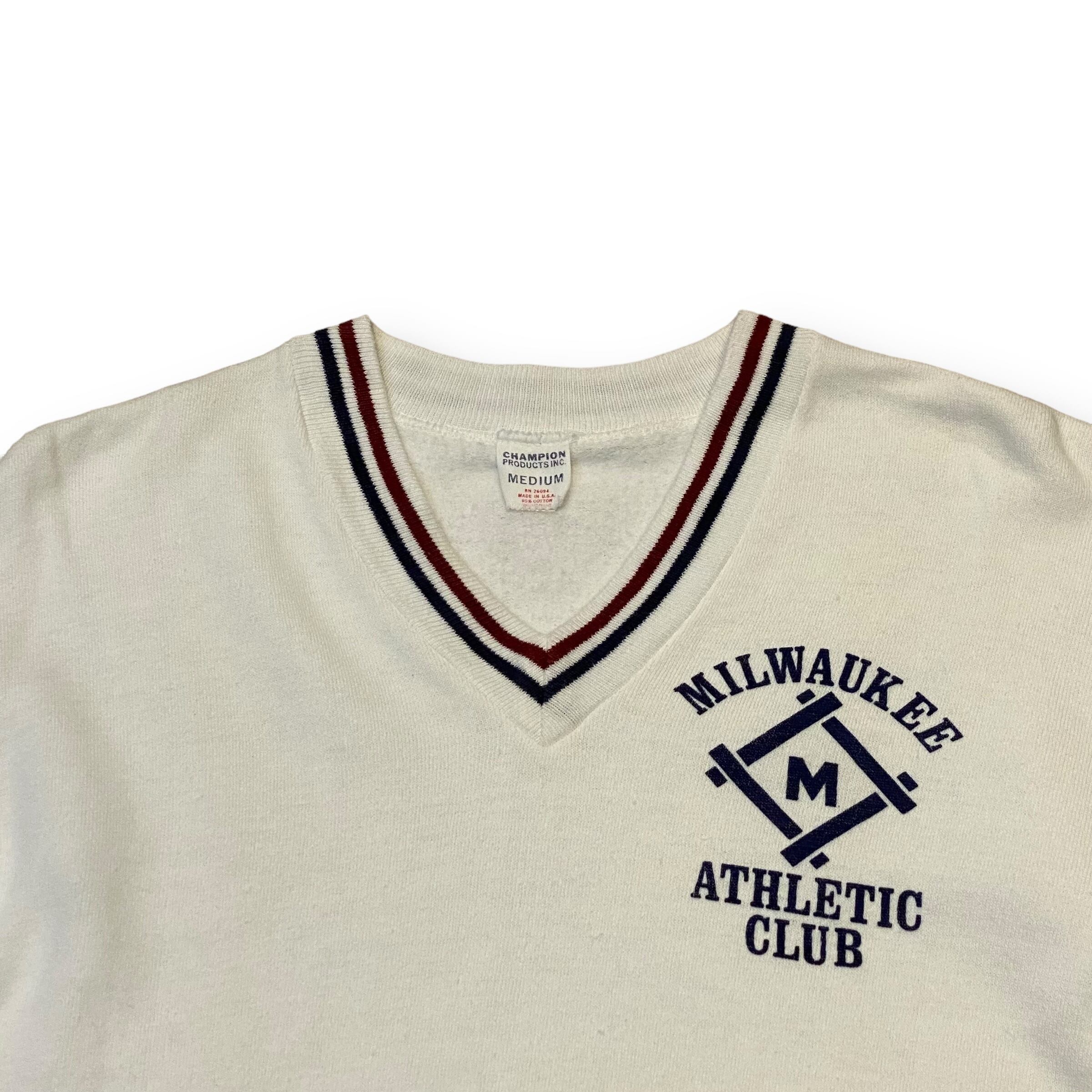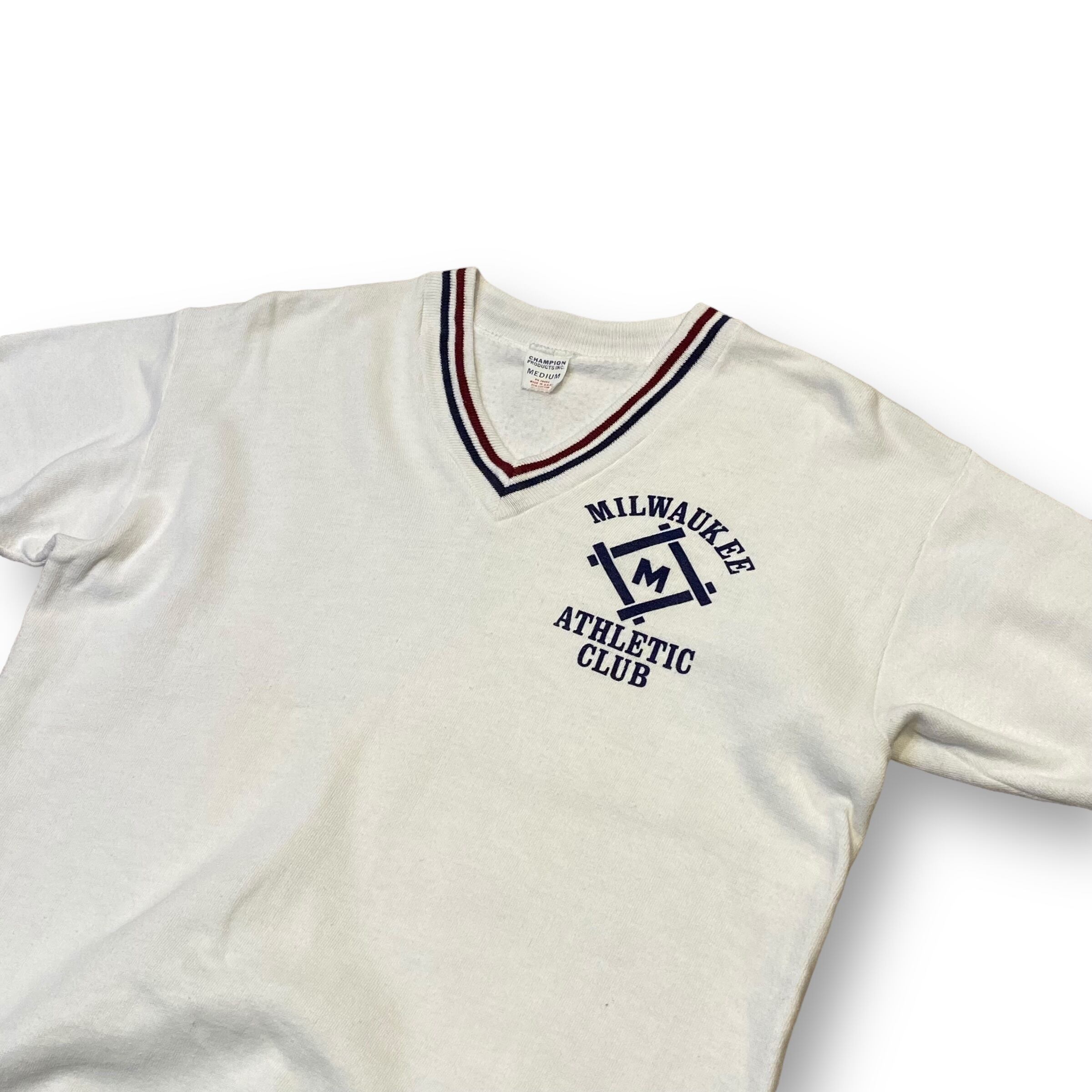 60年代頃championのスウェットシャツ。リブがトリコロールカラーなっており、Vネック仕様になっております。コンディションとても良好な一枚。