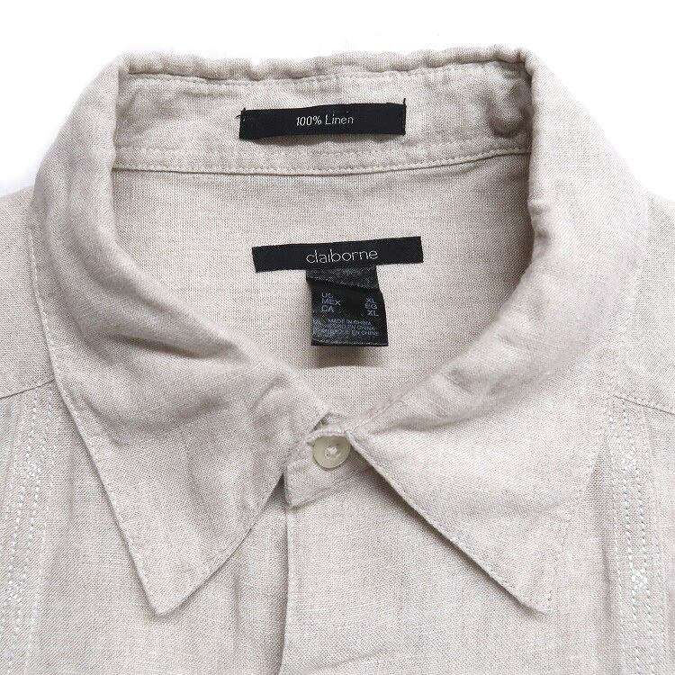 古着 claiborne リネン 半袖シャツ ベージュ 表記:XL gd403076n w40702