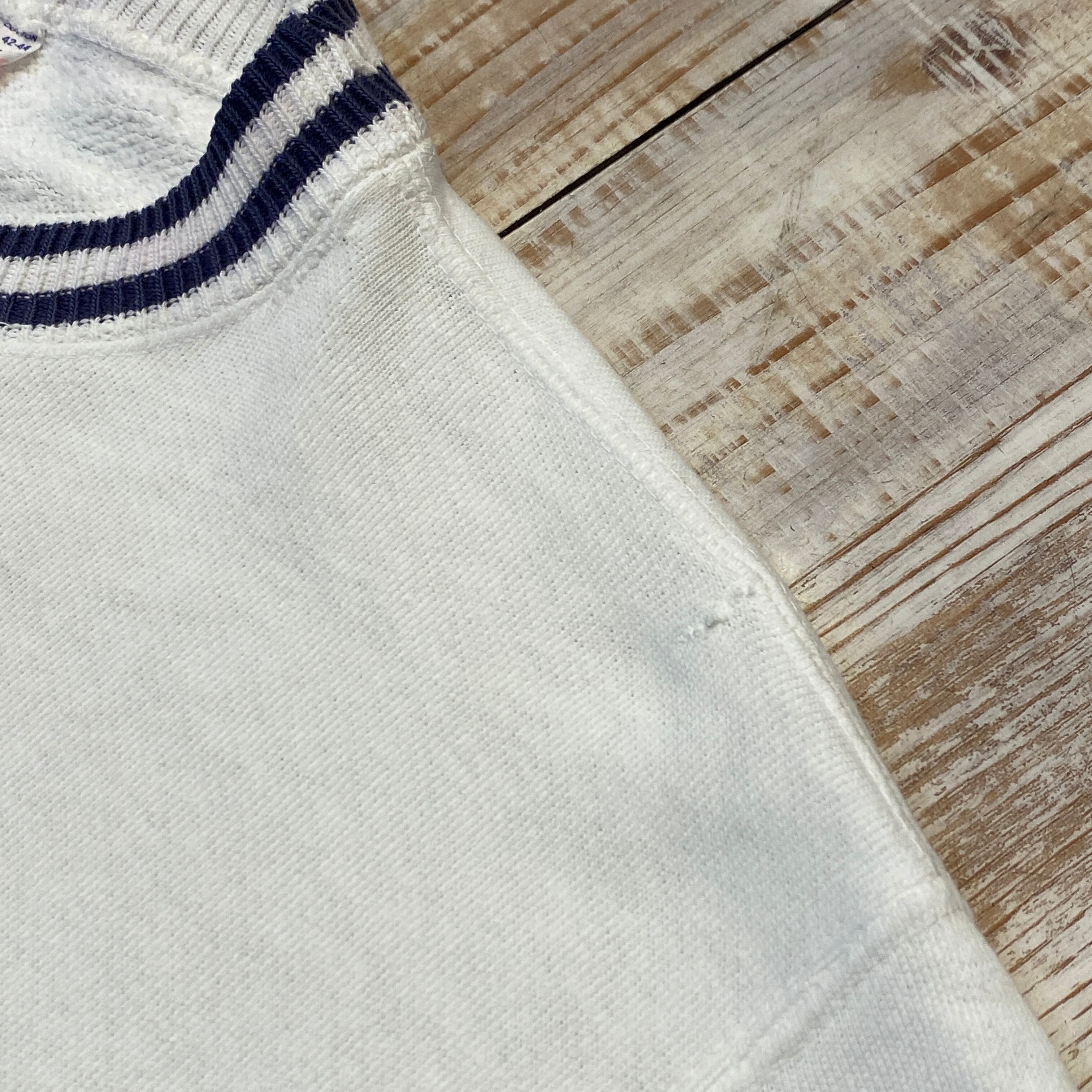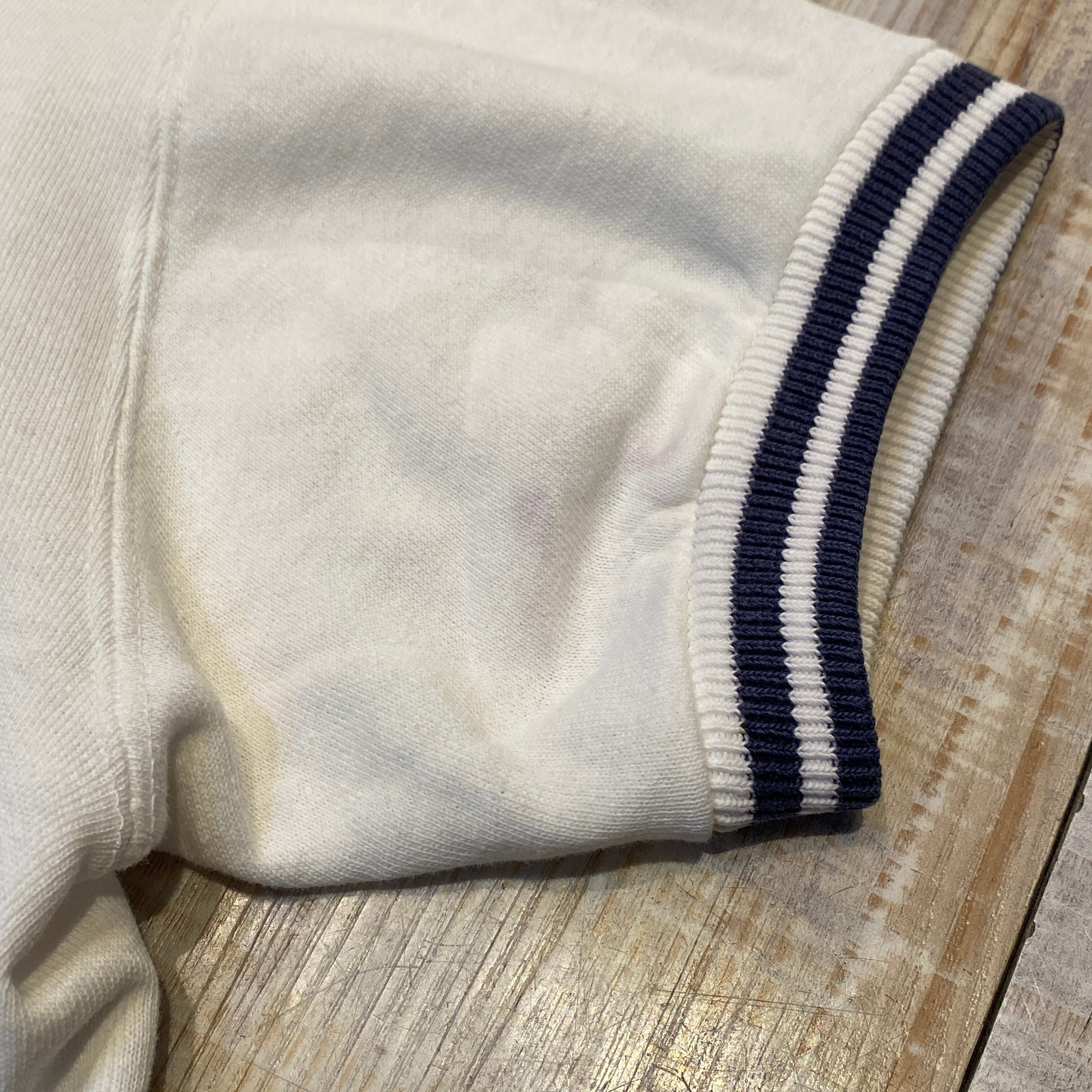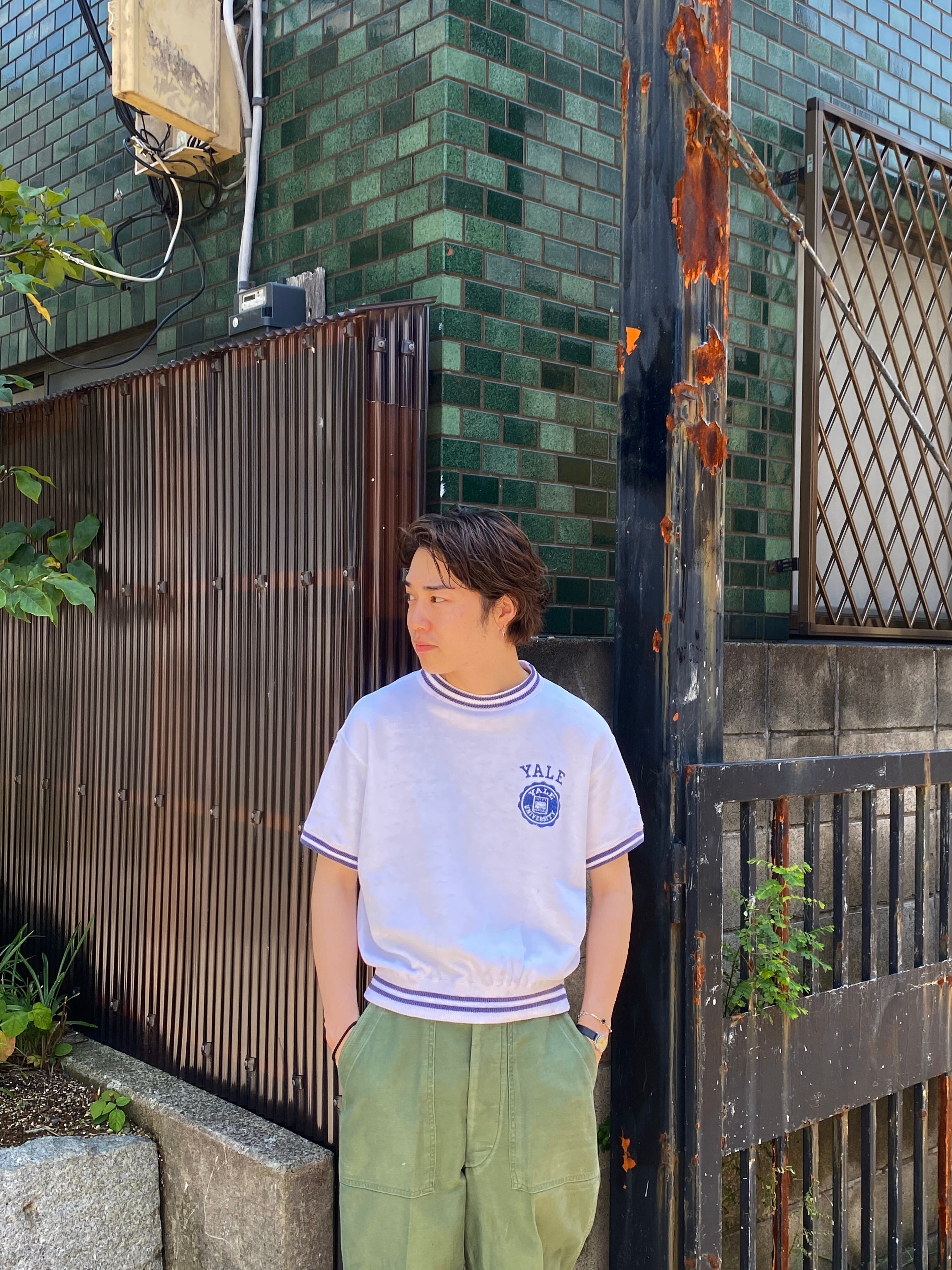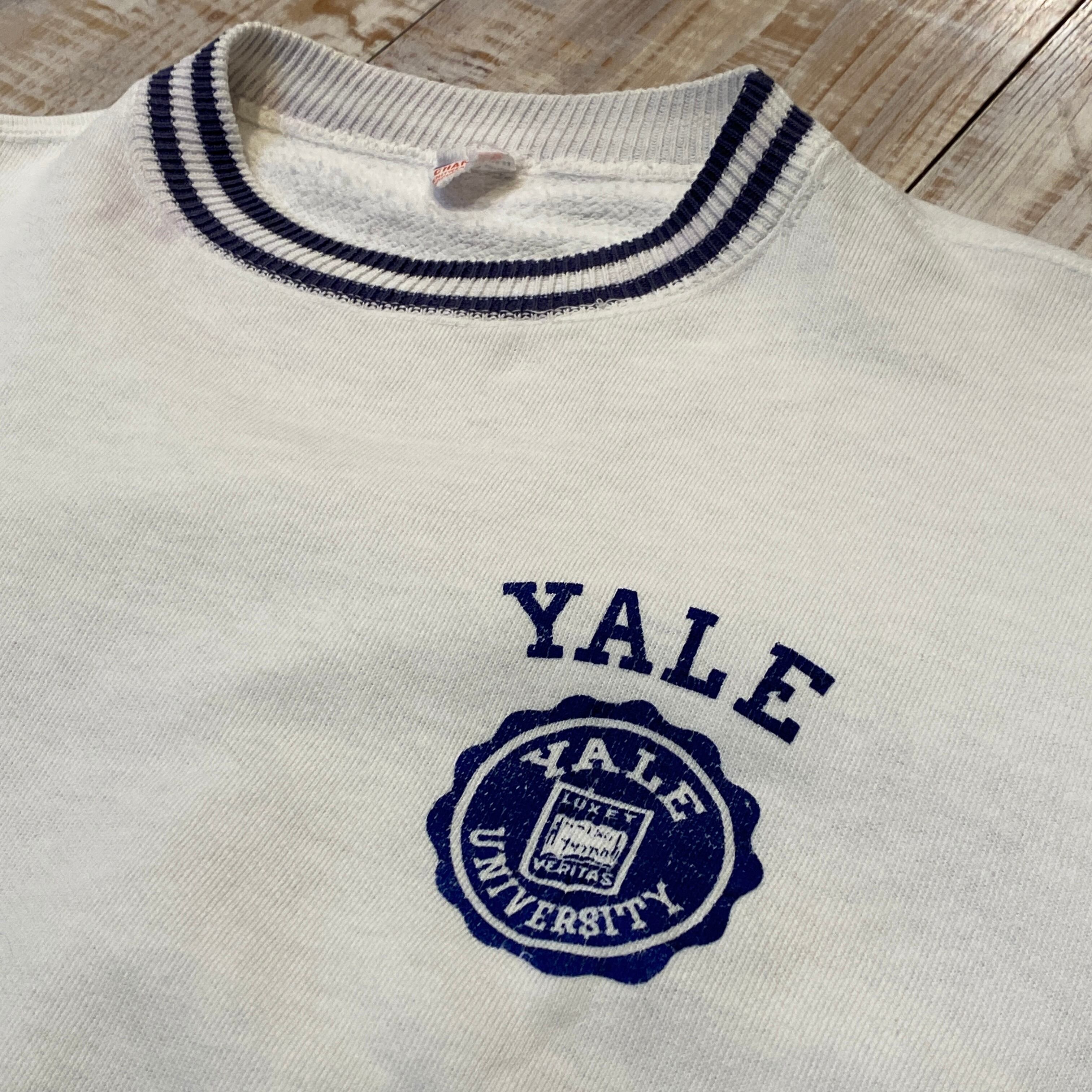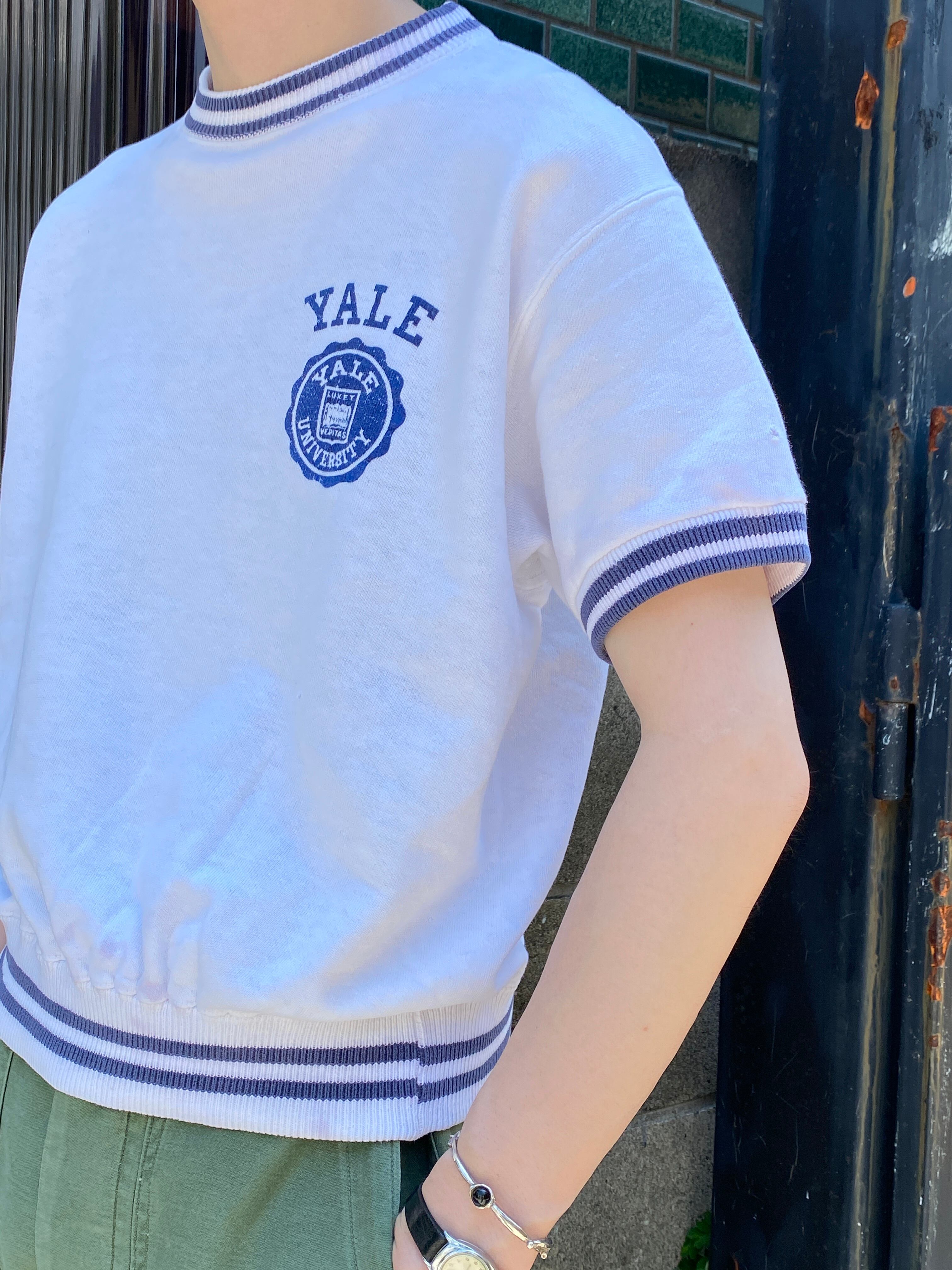 白ボディに茄子紺のリブライン仕様、胸にはYALE大学のプリントと贅沢な1着。