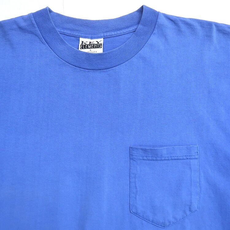古着 KEY ELEMENTS 無地 ポケットTシャツ ブルー 表記:L gd403286n w40723