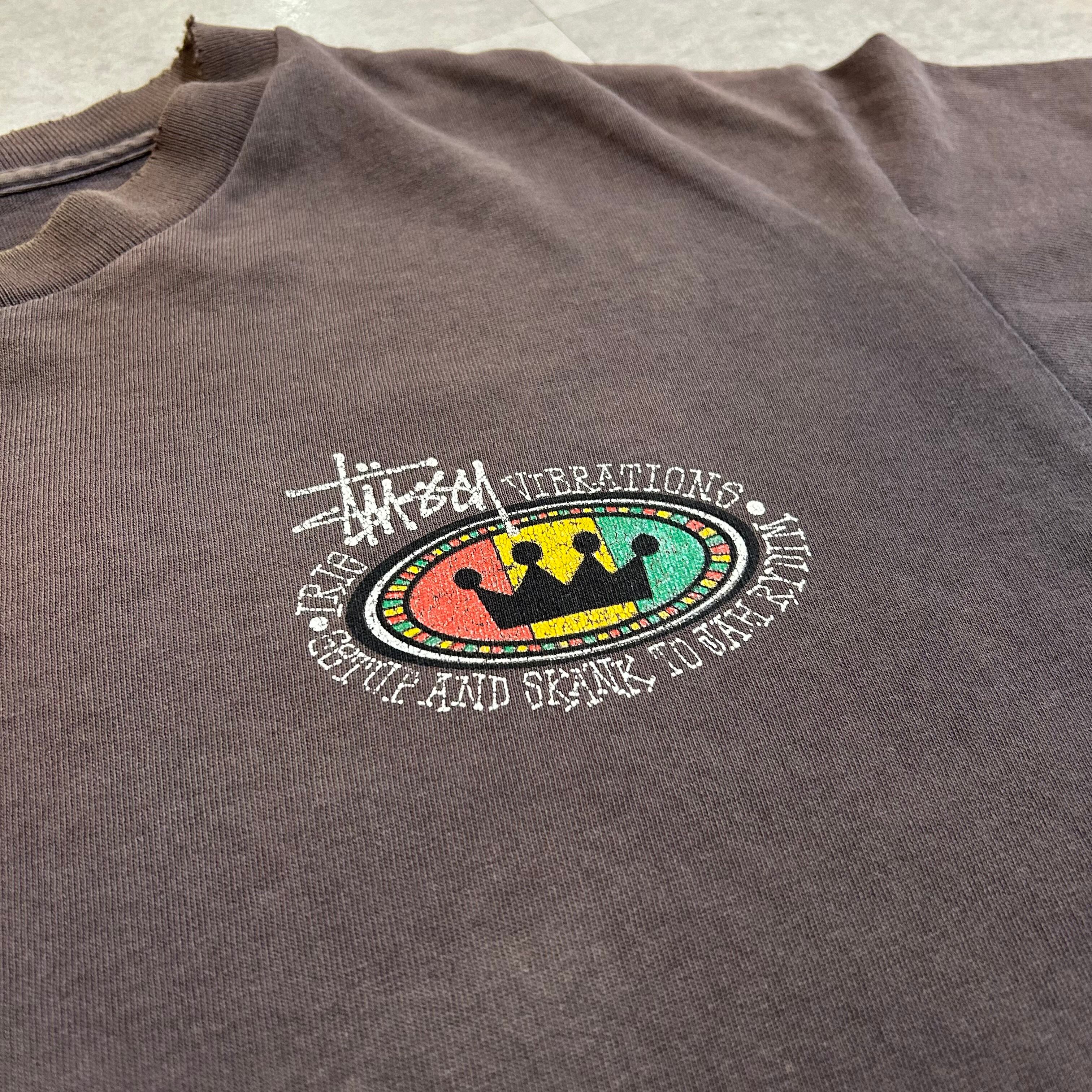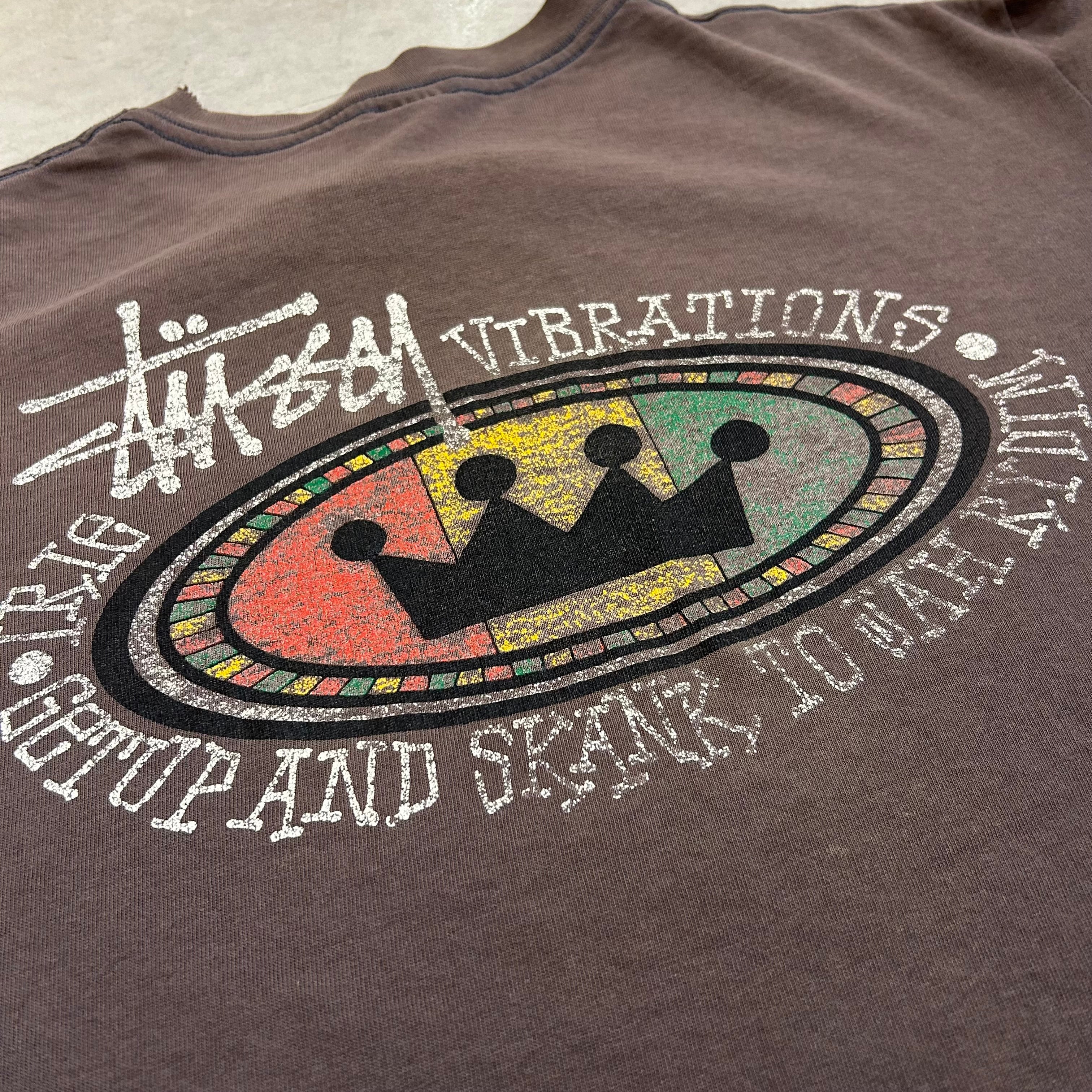 USA製 〜90年代 size: M 【 STUSSY 】ステューシー ブランド ロゴ スケート スミクロ クラウン ラスタ 両面プリント 希少 古着 古着屋 高円寺 ビンテージ n40729