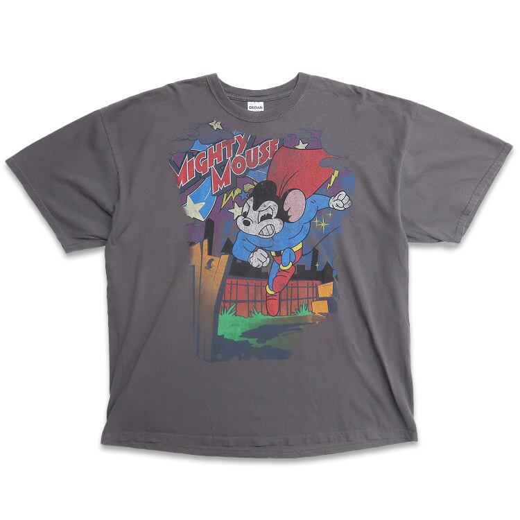 古着 GILDAN ギルダン Mighty Mouseマイティーマウス プリントTシャツ グレー 表記:2XL gd403351n w40730