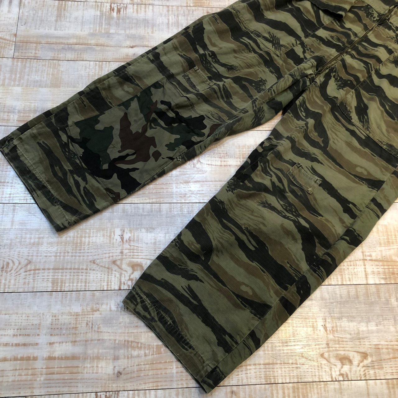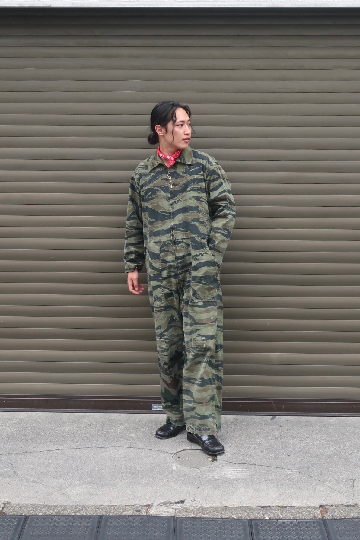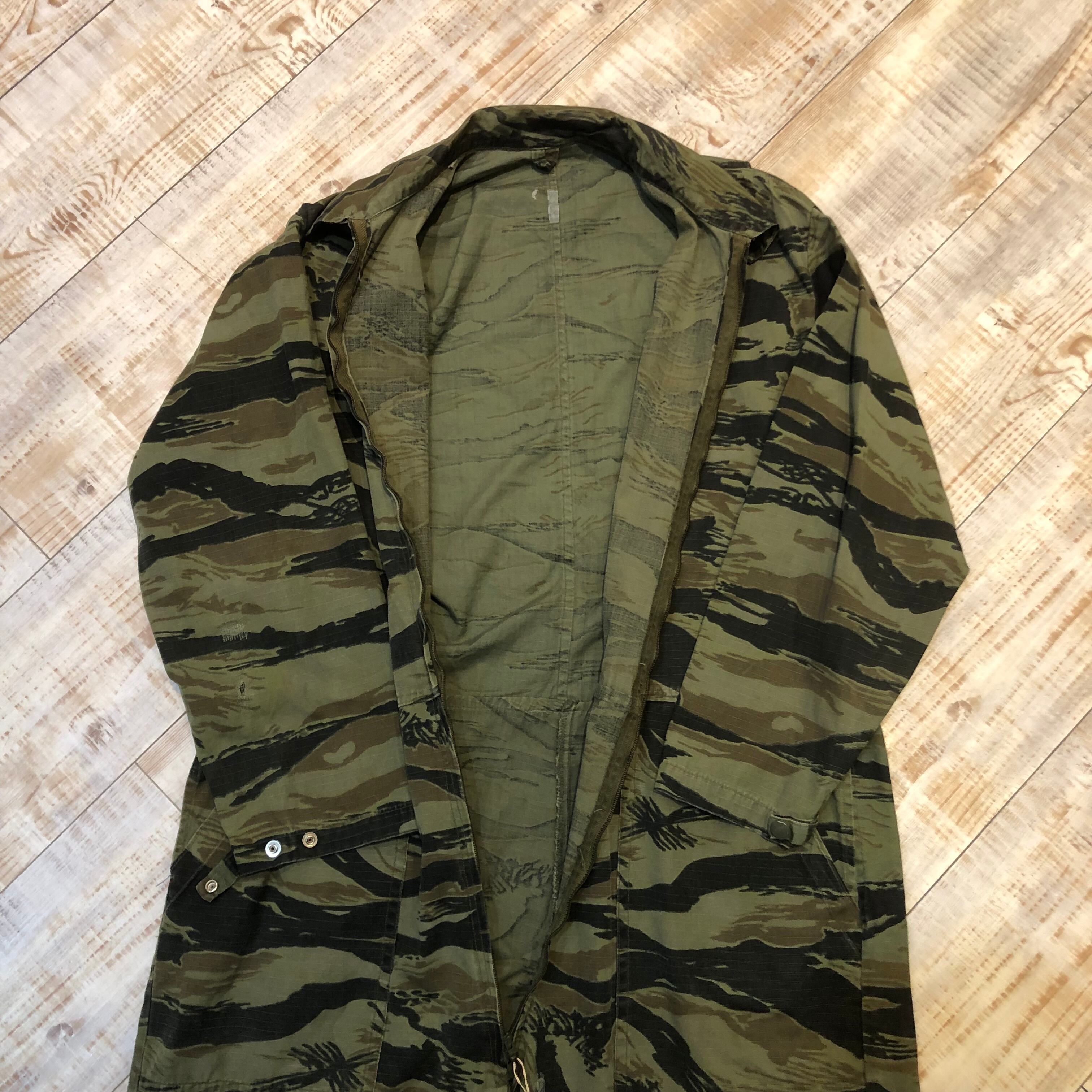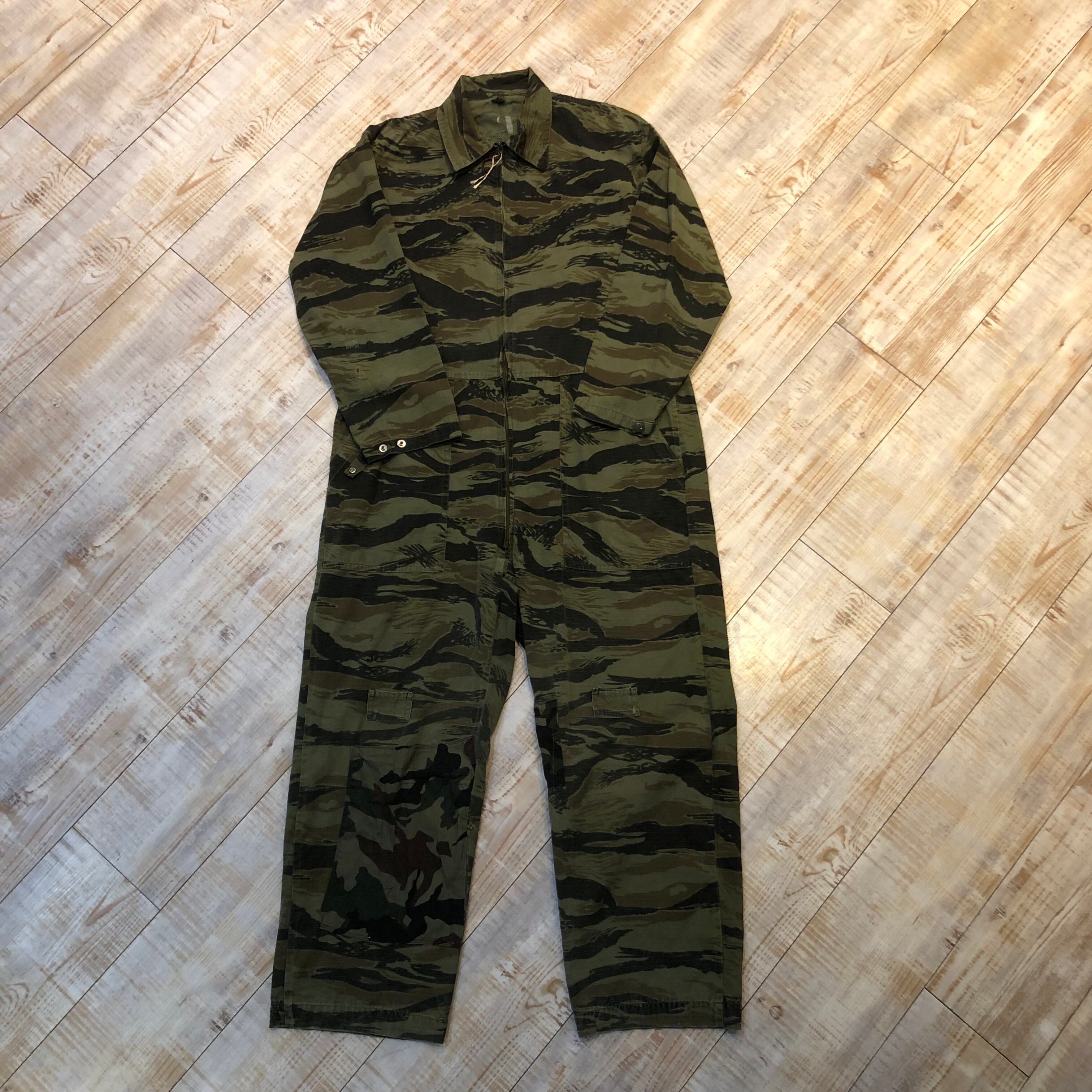 タイガーストライプカモのオールインワンでございます。人気のタイガーストライプで繋ぎは珍しいかと思います。是非この機会に。