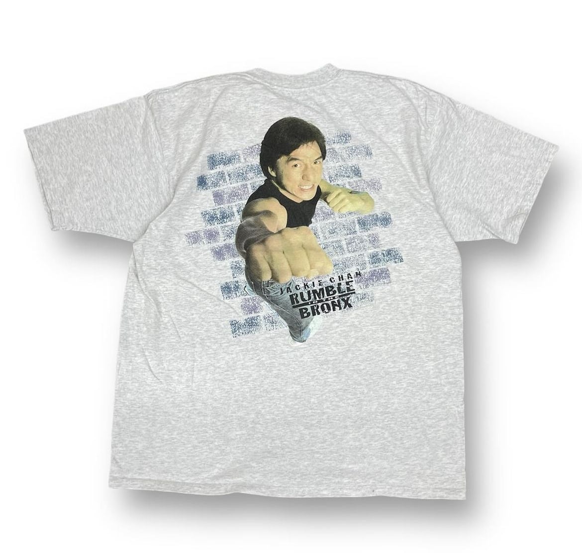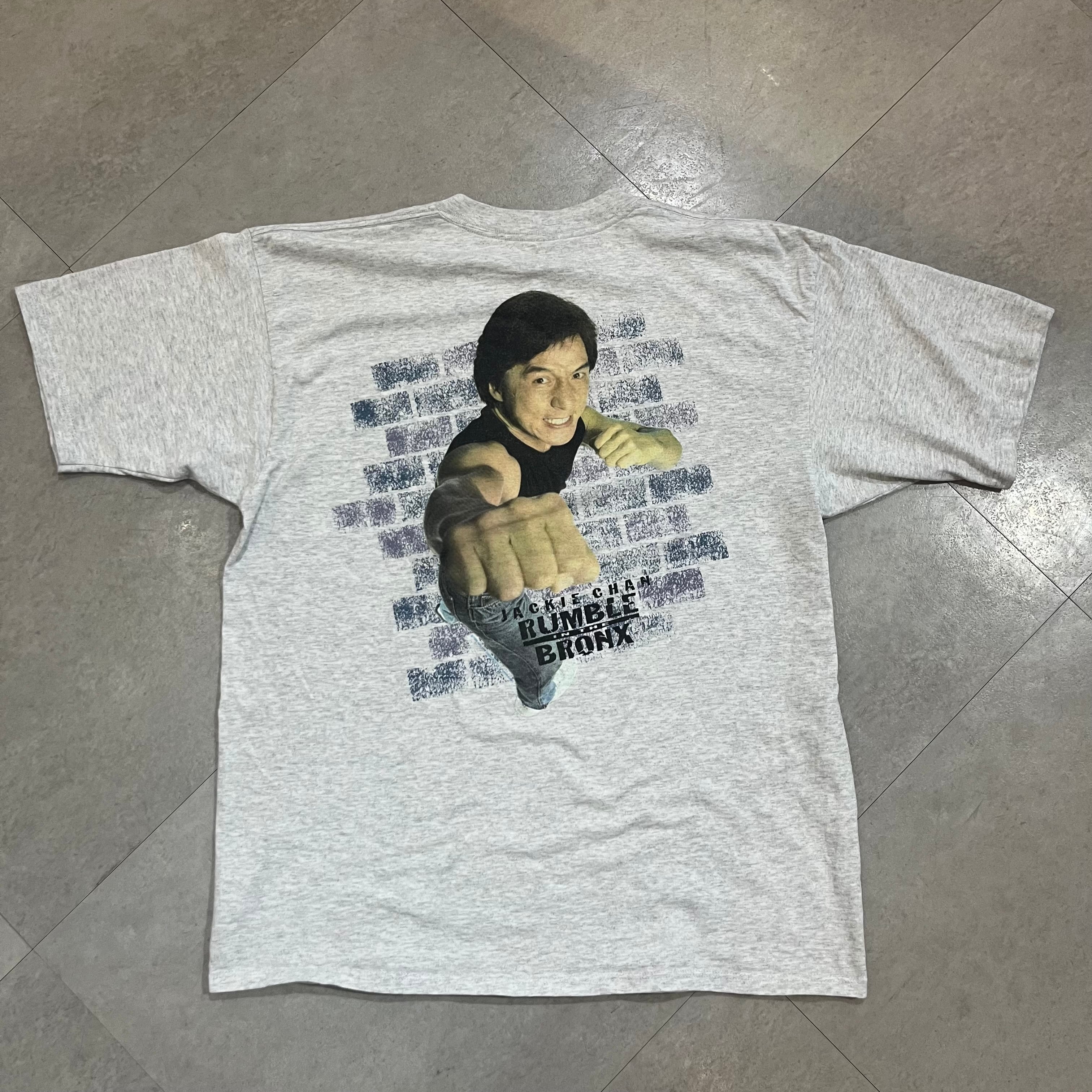 90年代~ カナダ製 size:XL【 Jackie Chan 】ジャッキー・チェン ムービーTシャツ プリントTシャツ ヴィンテージTシャツ プリントTシャツ 半袖Tシャツ グレー 両面プリント 古着 古着屋 高円寺 ビンテージ n40806