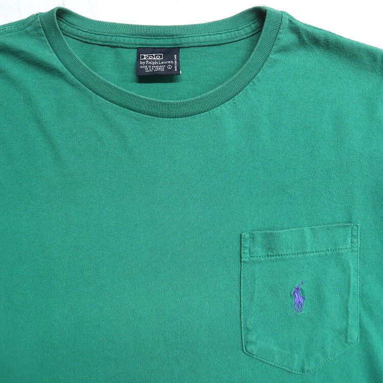 古着 ラルフローレン POLO RALPH LAURAN ワンポイント ロゴ 半袖 ポケットTシャツ グリーン 表記:L gd403428n w40807