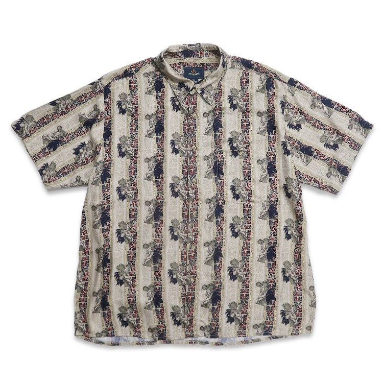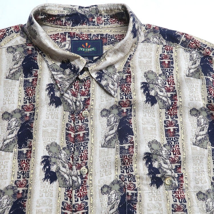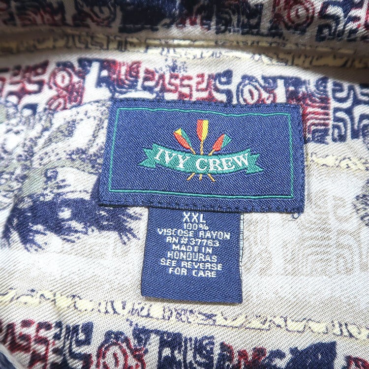 古着 90年代 IVY CREW レーヨン 総柄 半袖シャツ 表記:XXL gd403470n w40812
