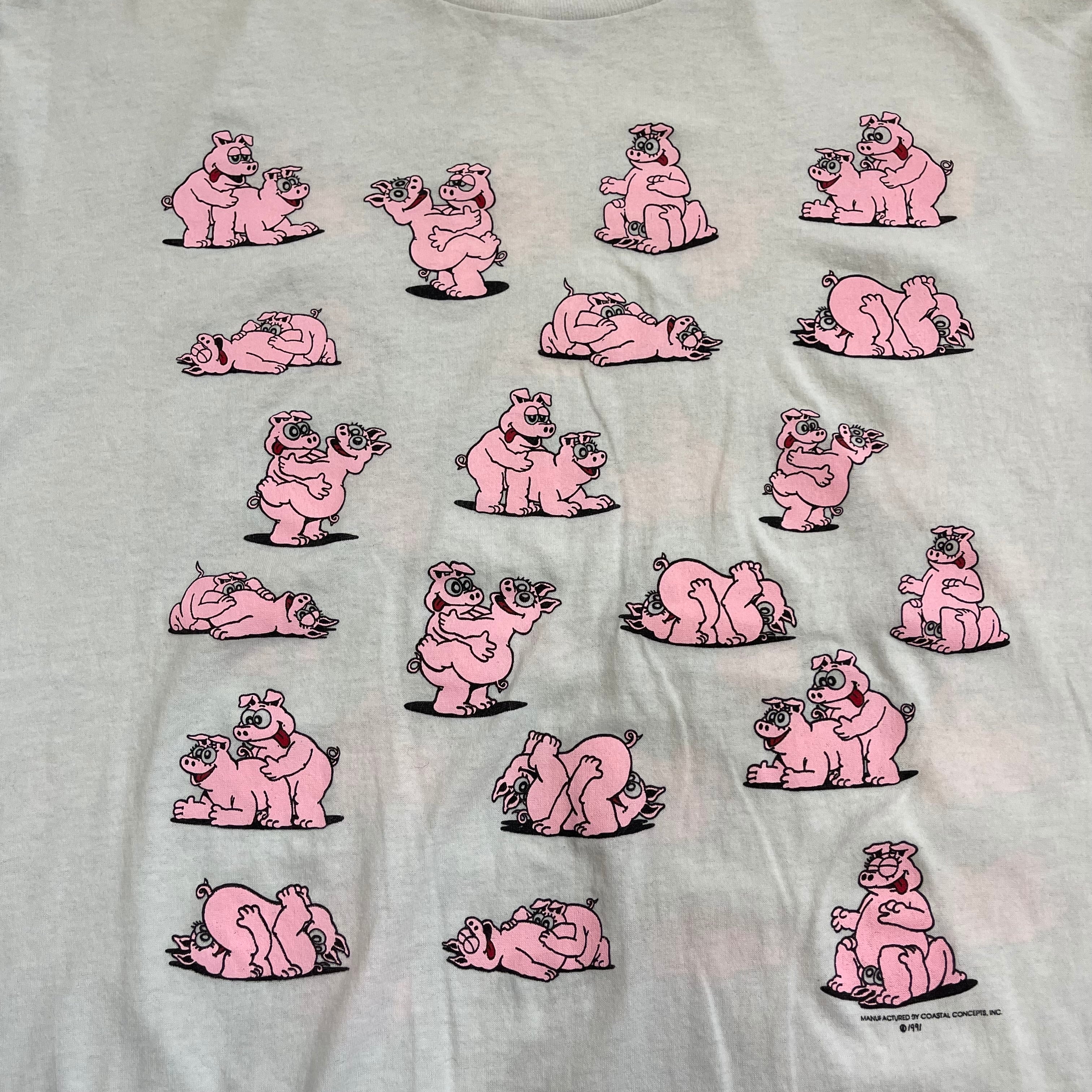 USA製 90年代 size: XXL 【 四十八手Tシャツ 】エロT エロTシャツ 豚 ピッグパターン ピンク ホワイト 両面プリント 古着 古着屋 高円寺 ビンテージ n40813