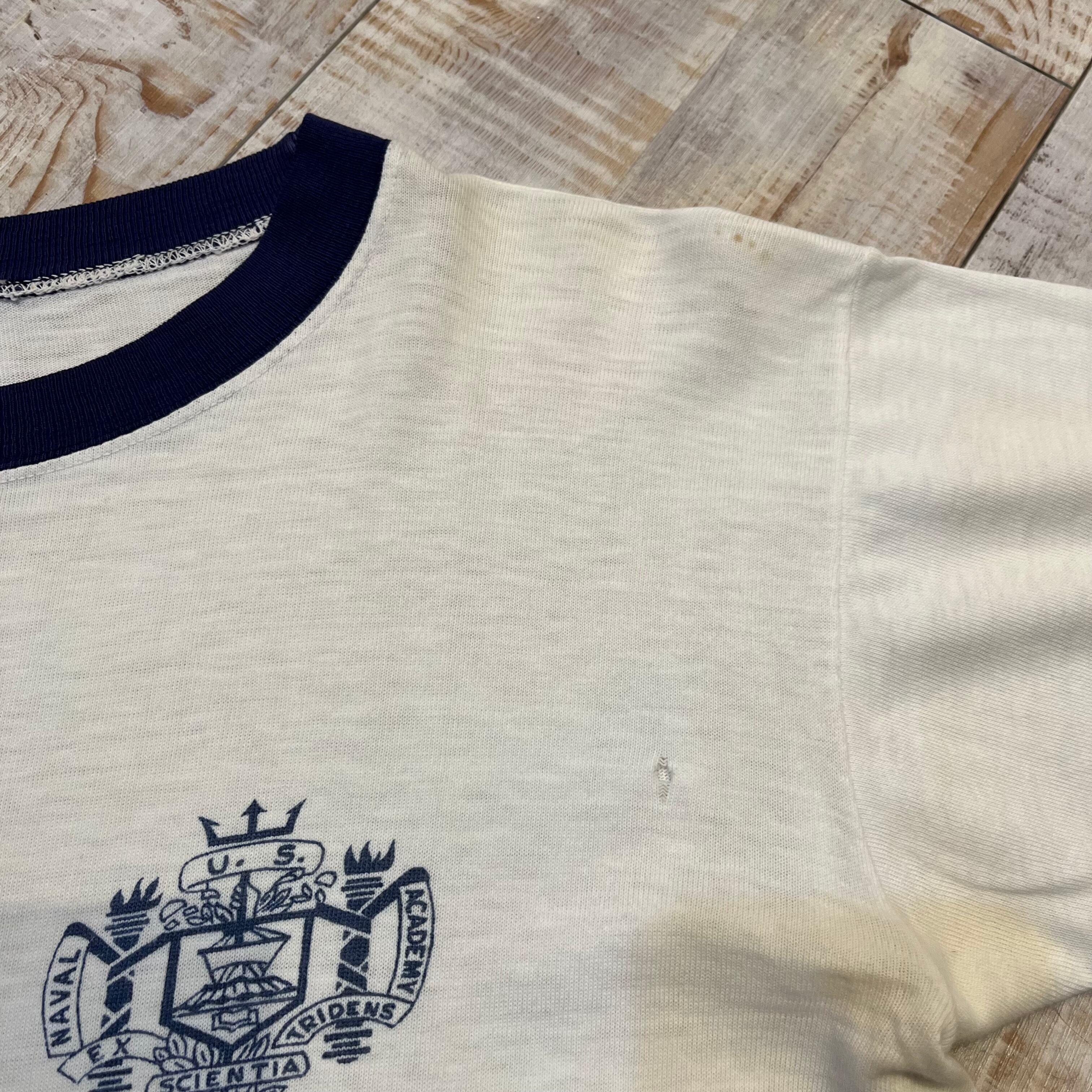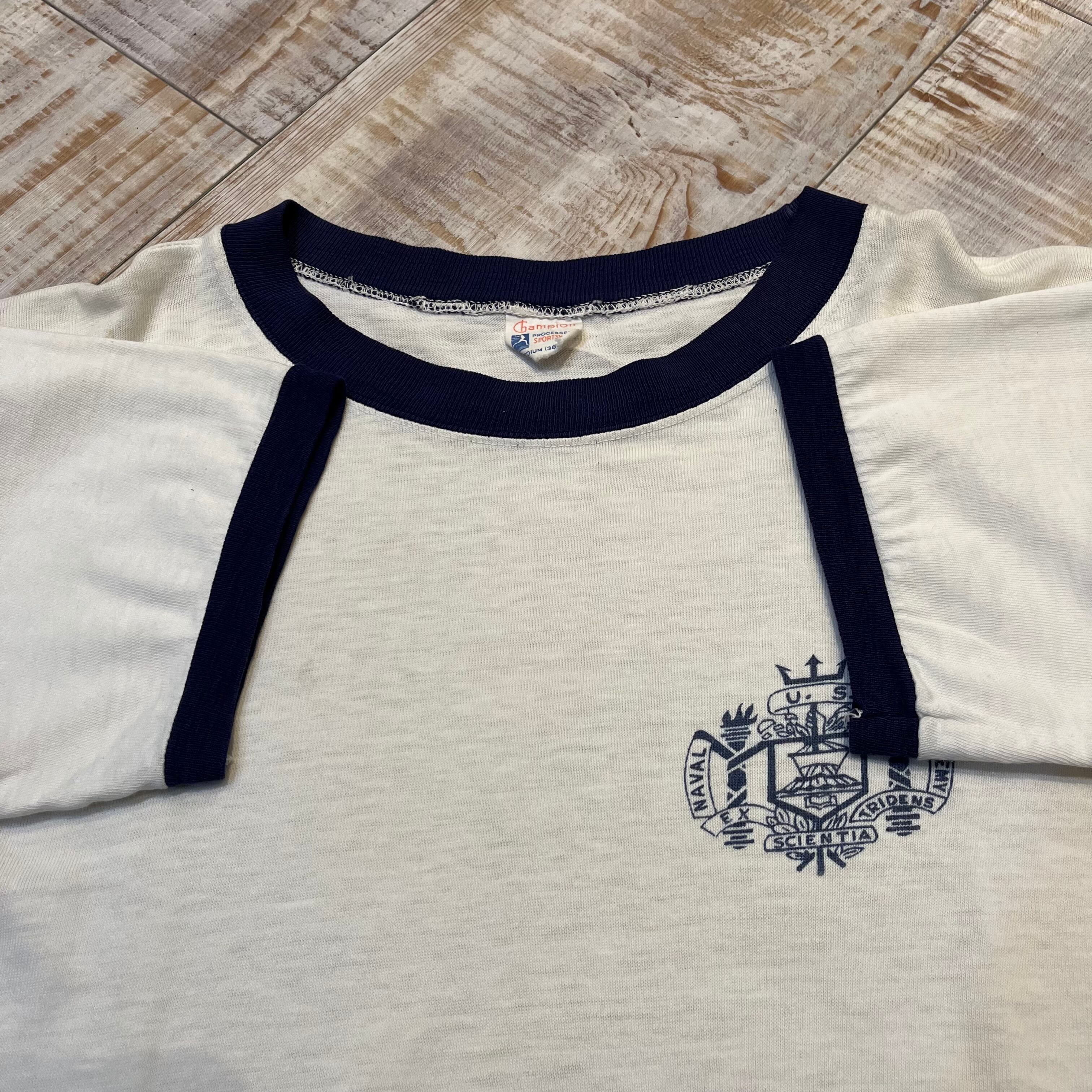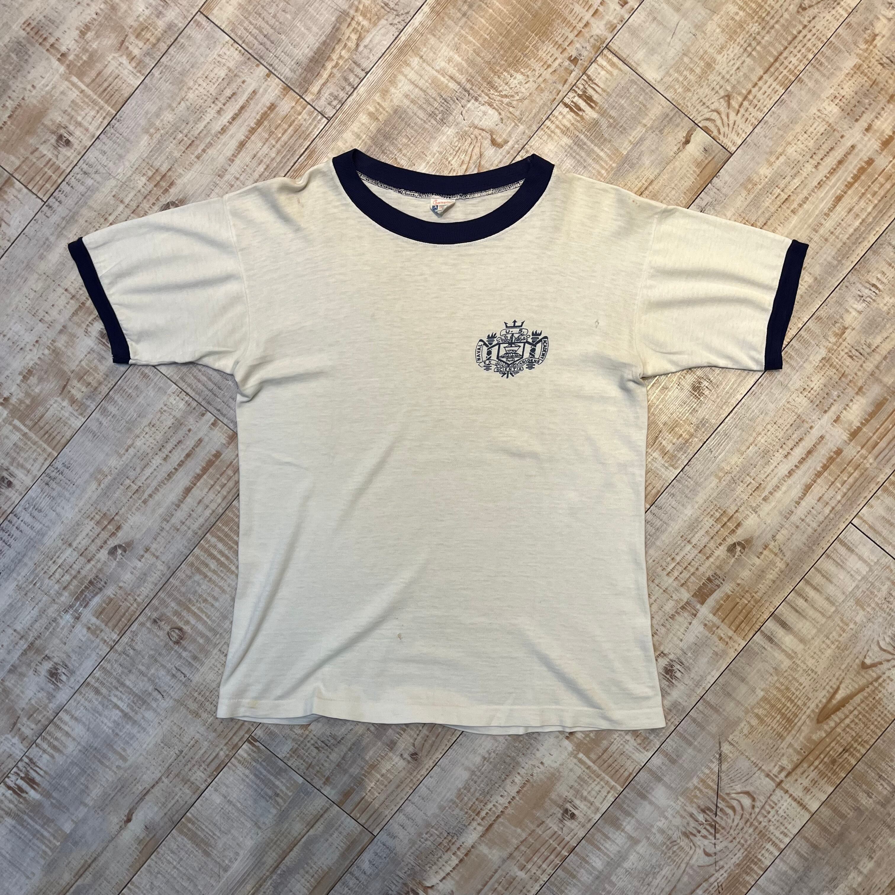 ~60年代 “M(38-40)” Champion チャンピオン リンガーTシャツ トリムTシャツ 白 USNA 染み込みプリント 古着 古着屋 高円寺 ビンテージ n40817