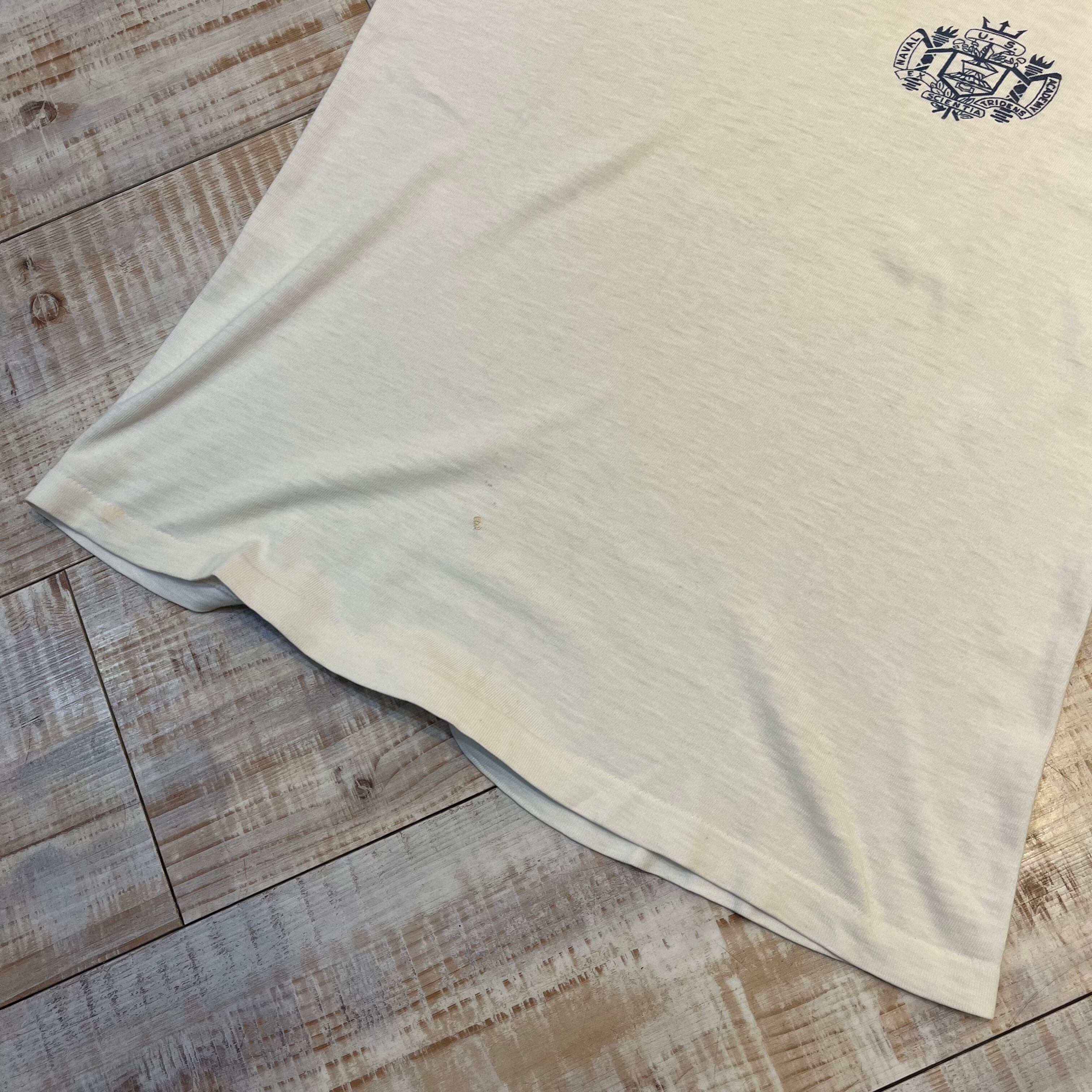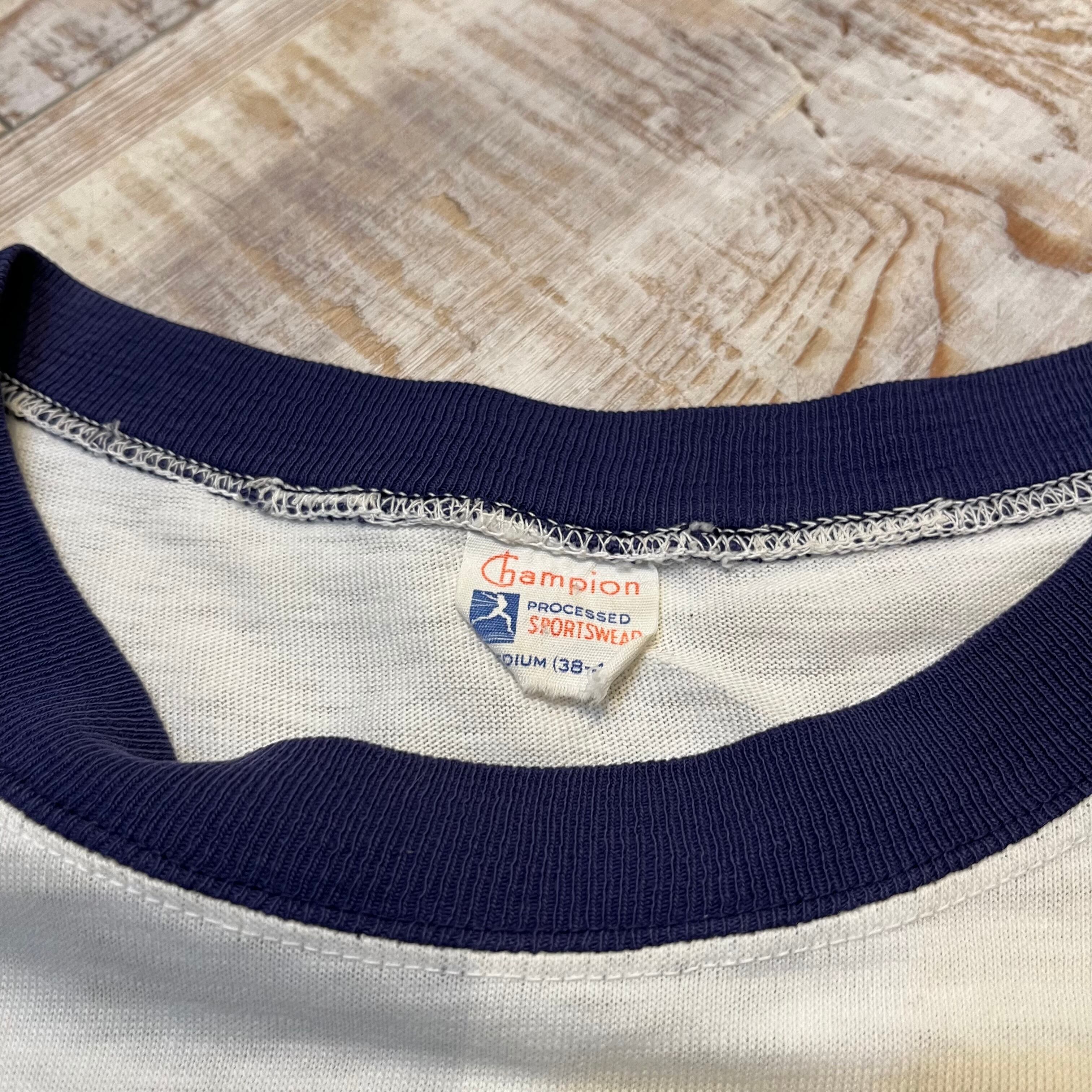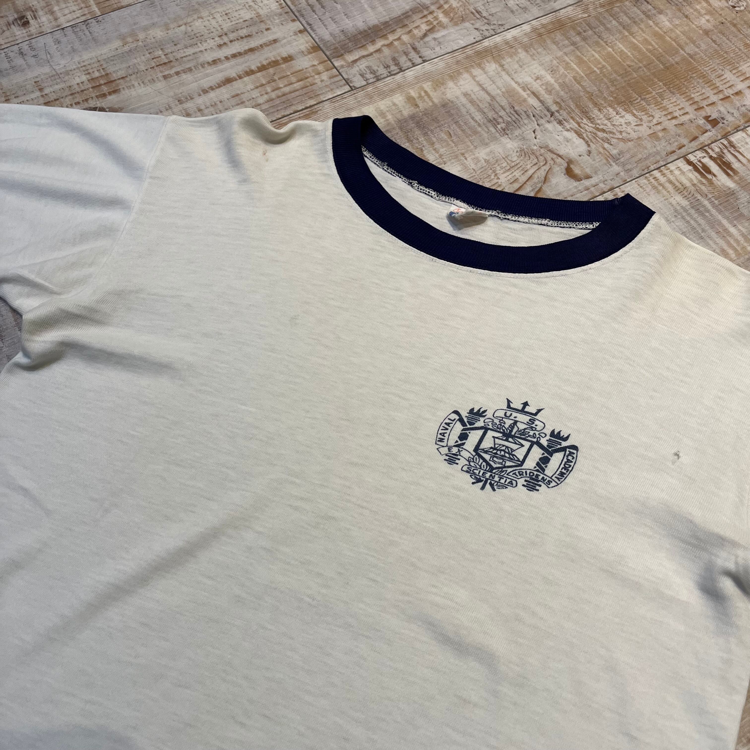 ~60年代 “M(38-40)” Champion チャンピオン リンガーTシャツ トリムTシャツ 白 USNA 染み込みプリント 古着 古着屋 高円寺 ビンテージ n40817