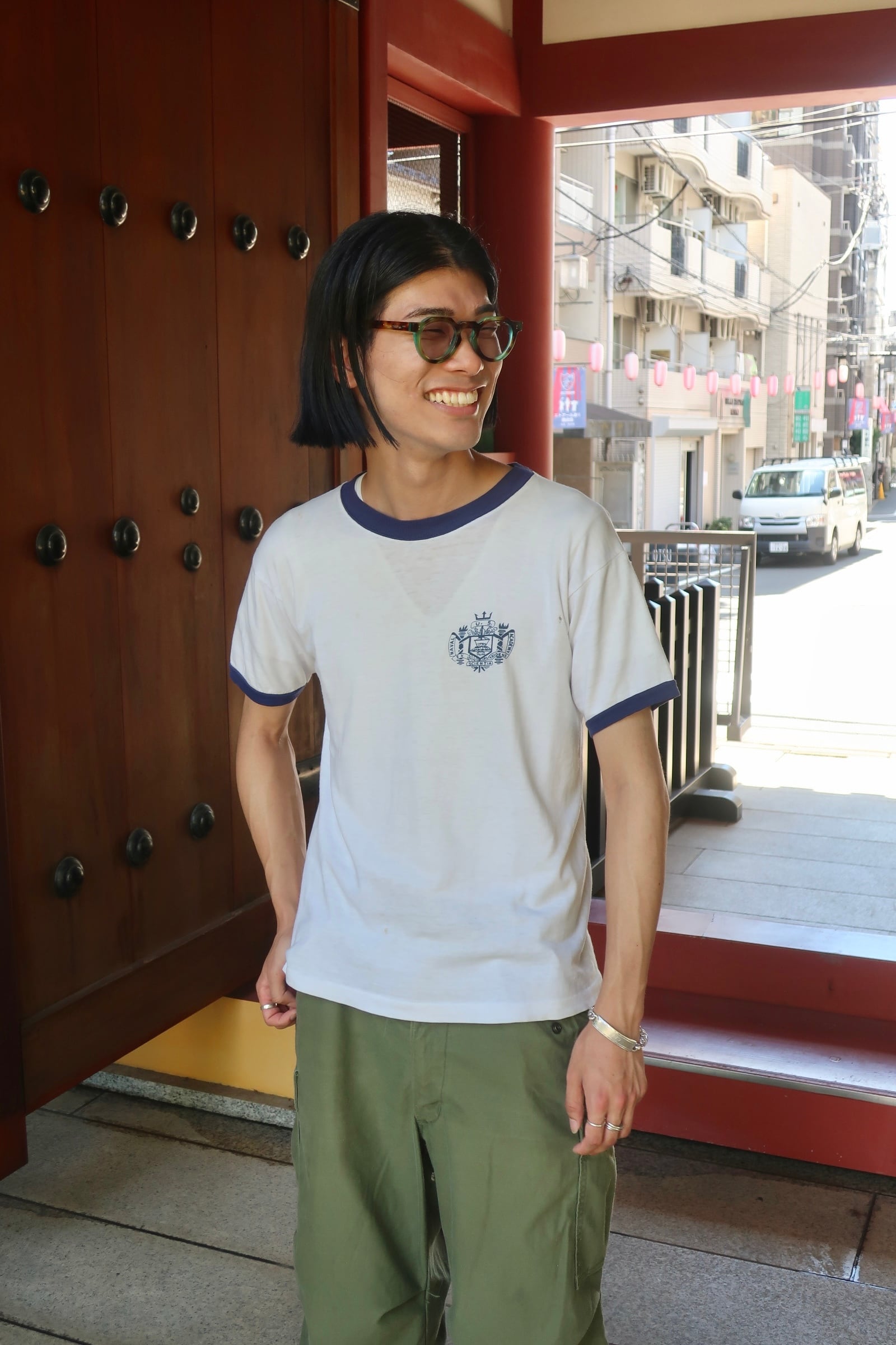 小文字ランタグが付く50年代頃のリンガーTシャツ。この年代のTシャツは希少になってきました。USNAの染み込みプリントと言う事なし。是非。