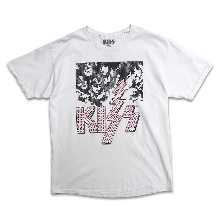 古着 KISS キス バンドTシャツ プリントTシャツ ホワイト ラインストーン 表記:M/L gd403595n w40825