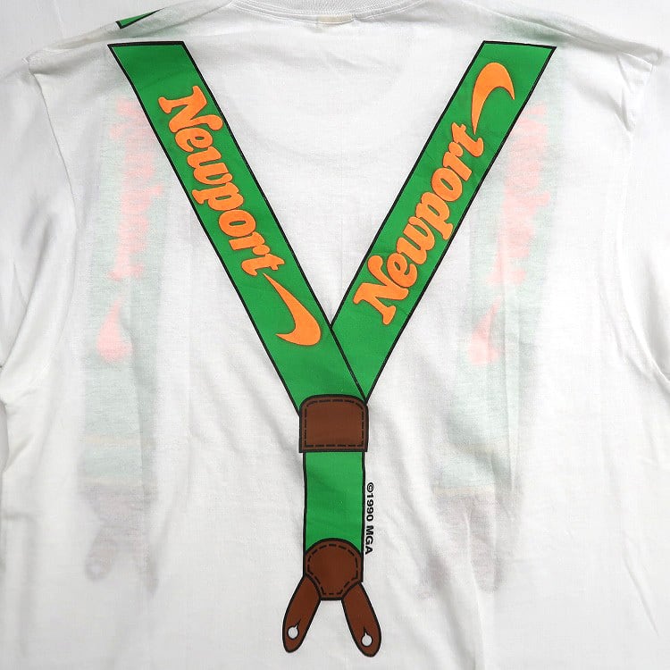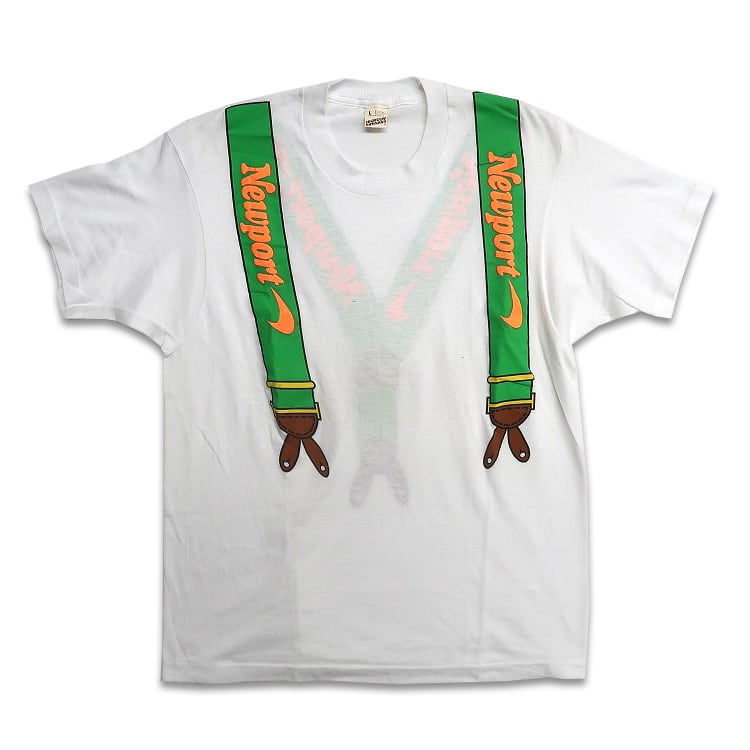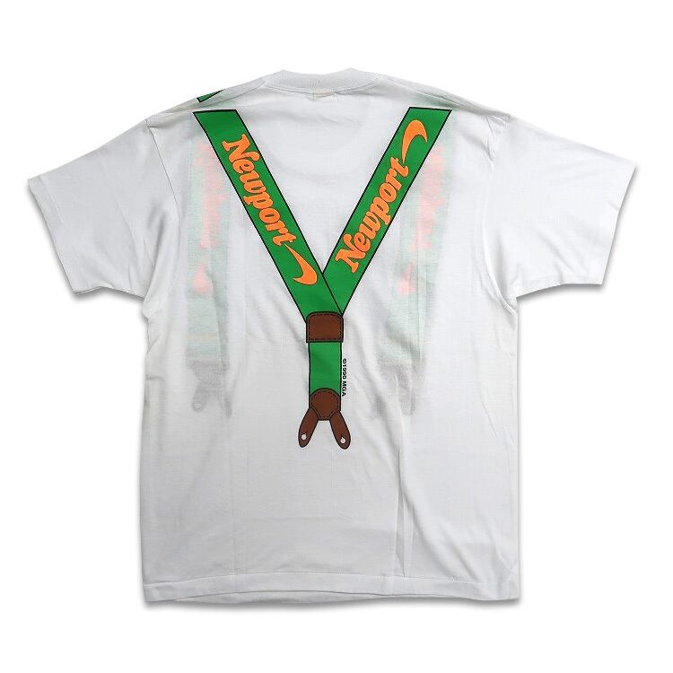 古着 90年代 USA製 スクリーンスターズ Newport ニューポート たばこ プリントTシャツ サスペンダー トリックアート ホワイト 表記:L gd403600n w40825