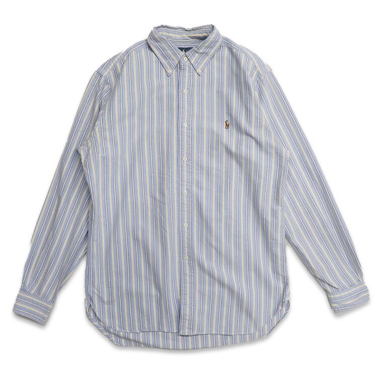 古着 ラルフローレン RALPH LAUREN ボタンダウンシャツ ストライプ 長袖シャツ ワンポイント マチ付き 表記:M gd403607n w40827