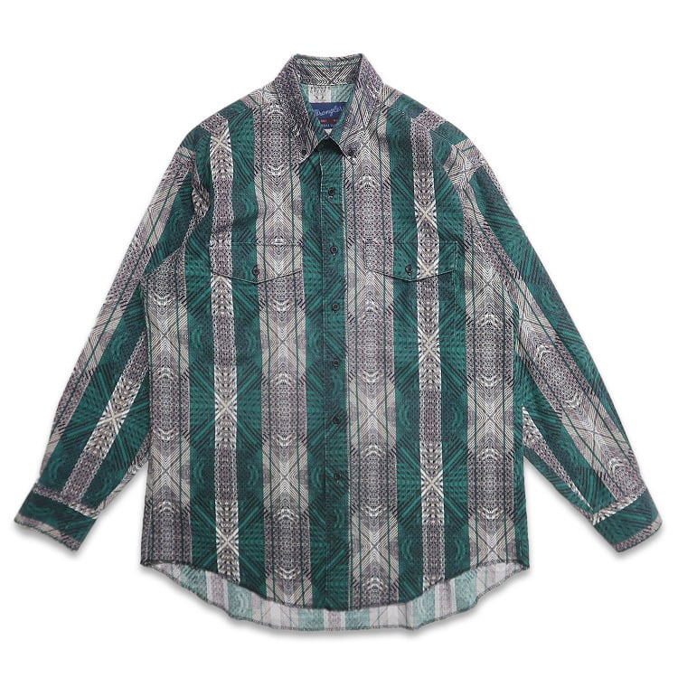 【お客様専用】古着 90年代 ラングラー Wrangler 総柄 ストライプ ウエスタンシャツ 長袖シャツ 表記:16 1/2-34 gd403639n w40901