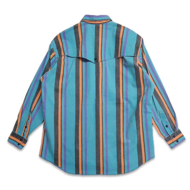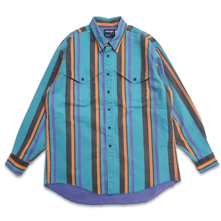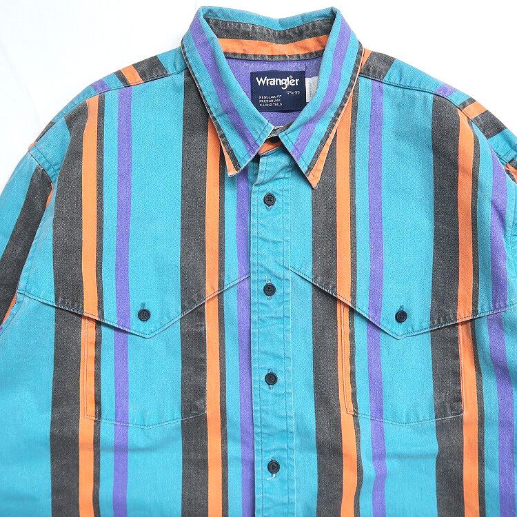 古着 〜90年代 USA製 ラングラー Wrangler ストライプ柄 ウエスタンシャツ 長袖シャツ 表記:17 1/2×35 gd403653n w40903
