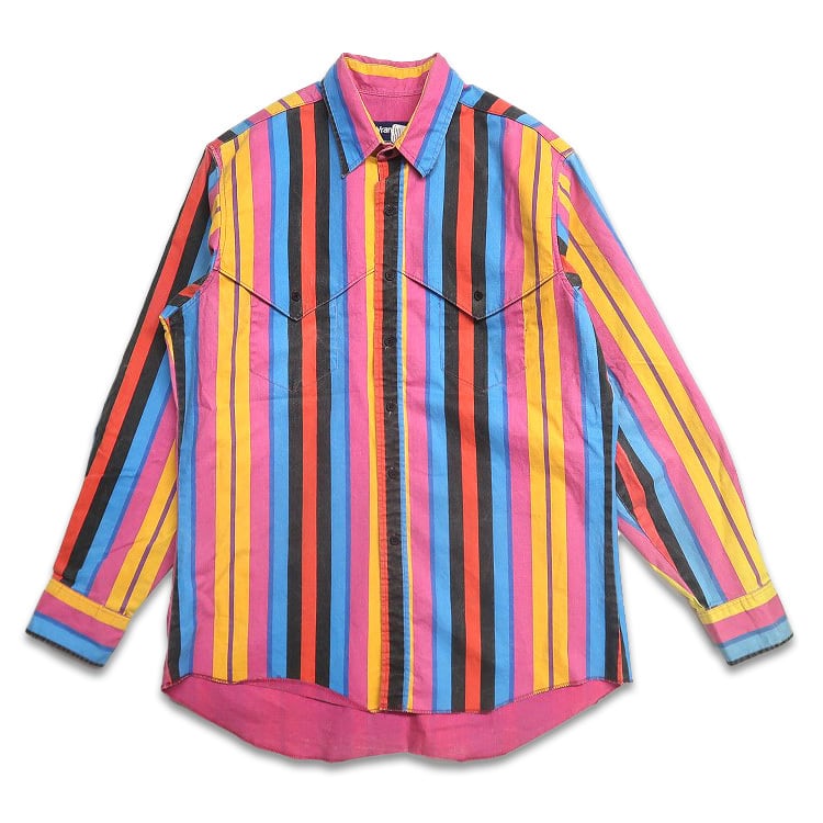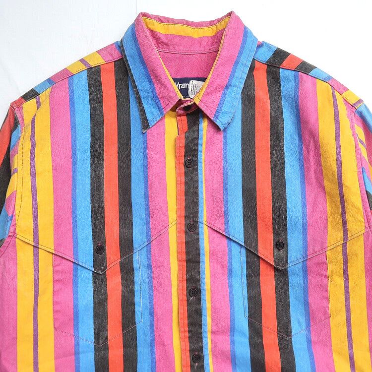 古着 〜90年代 ラングラー Wrangler ストライプ柄 ウエスタンシャツ 長袖シャツ 表記:16 1/2×35 gd403654n w40903