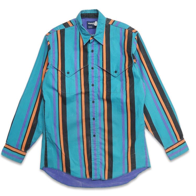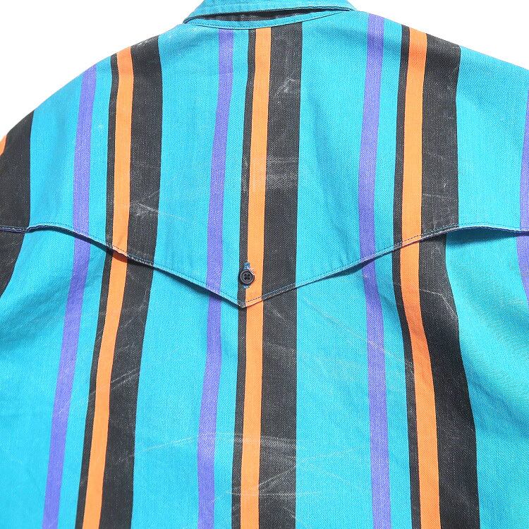 古着 〜90年代 USA製 ラングラー Wrangler ストライプ柄 ウエスタンシャツ 長袖シャツ 表記:16×34 gd403668n w40906