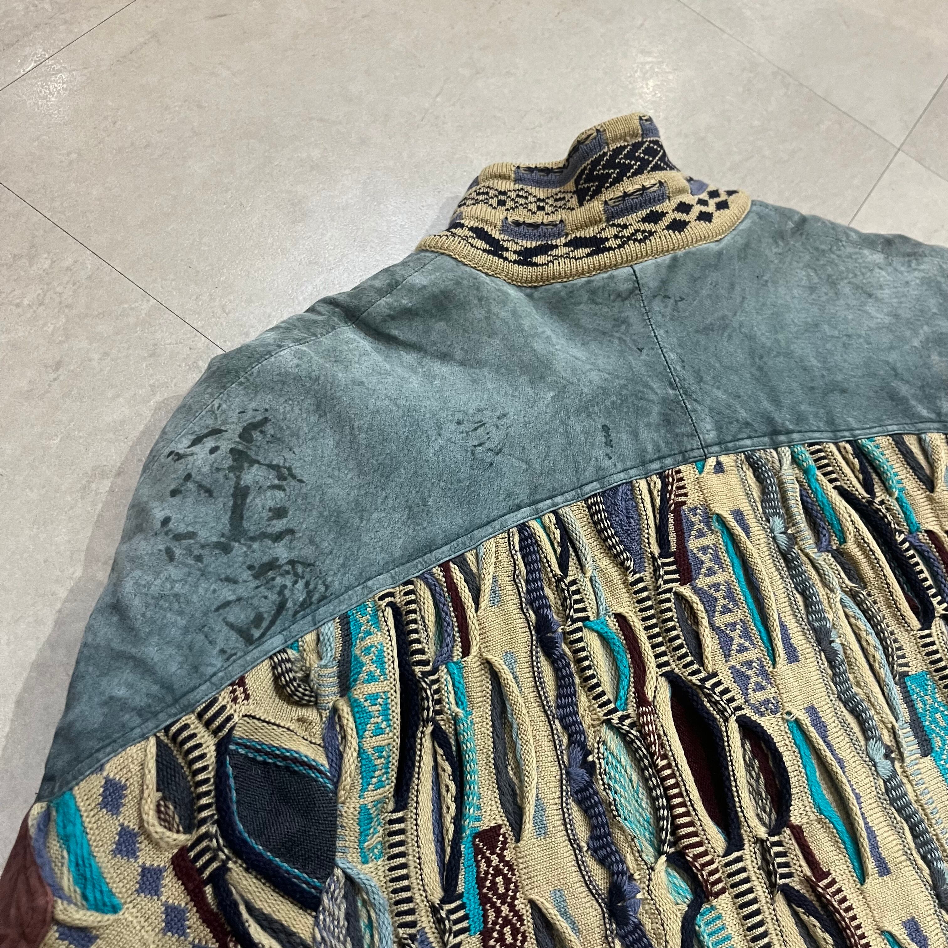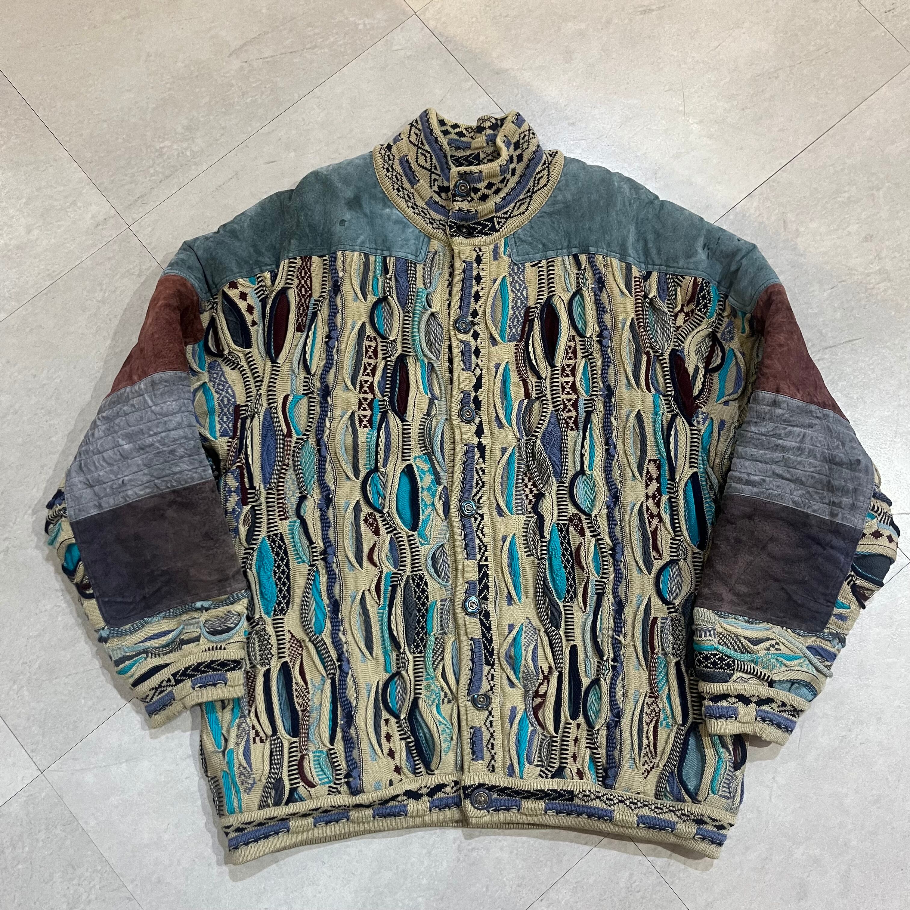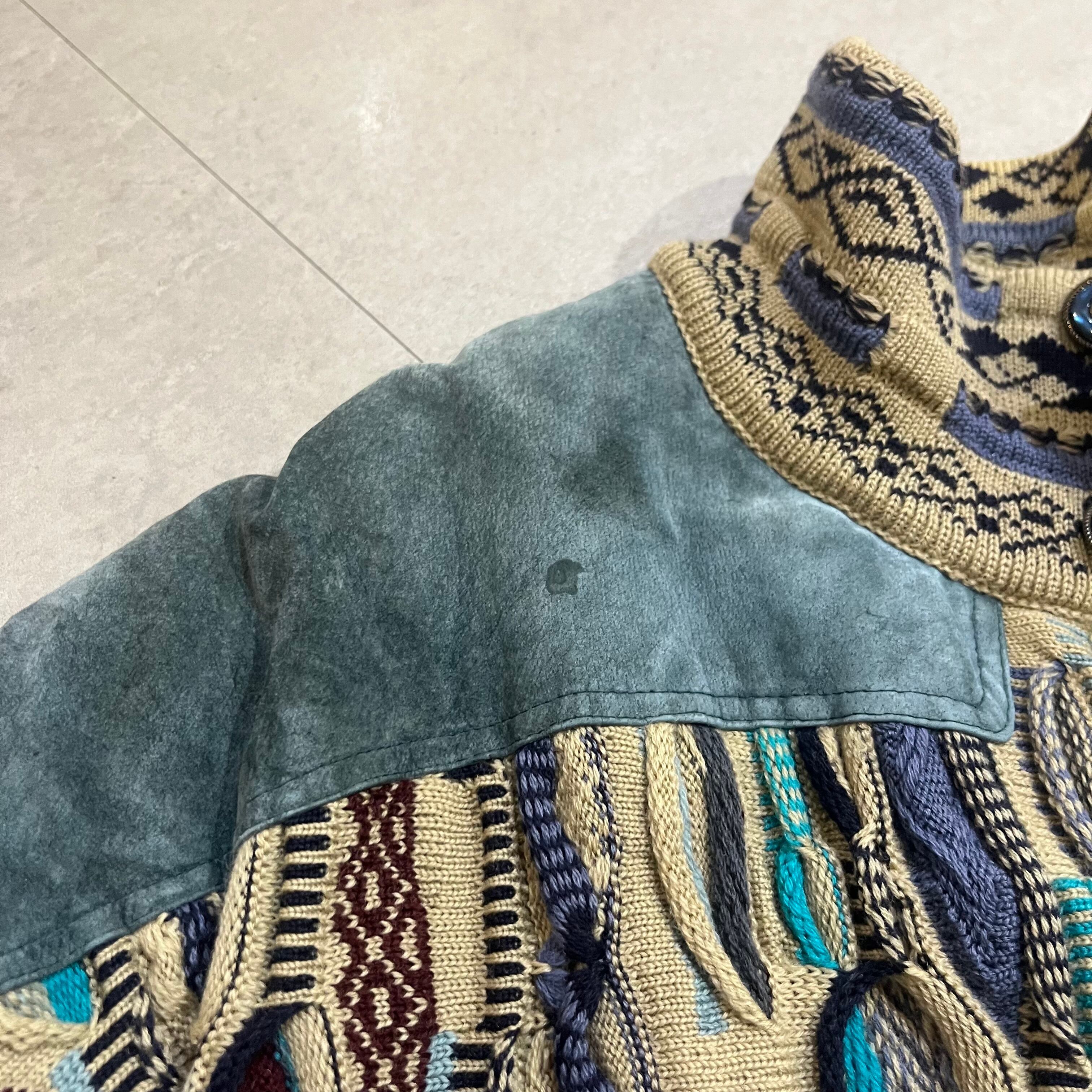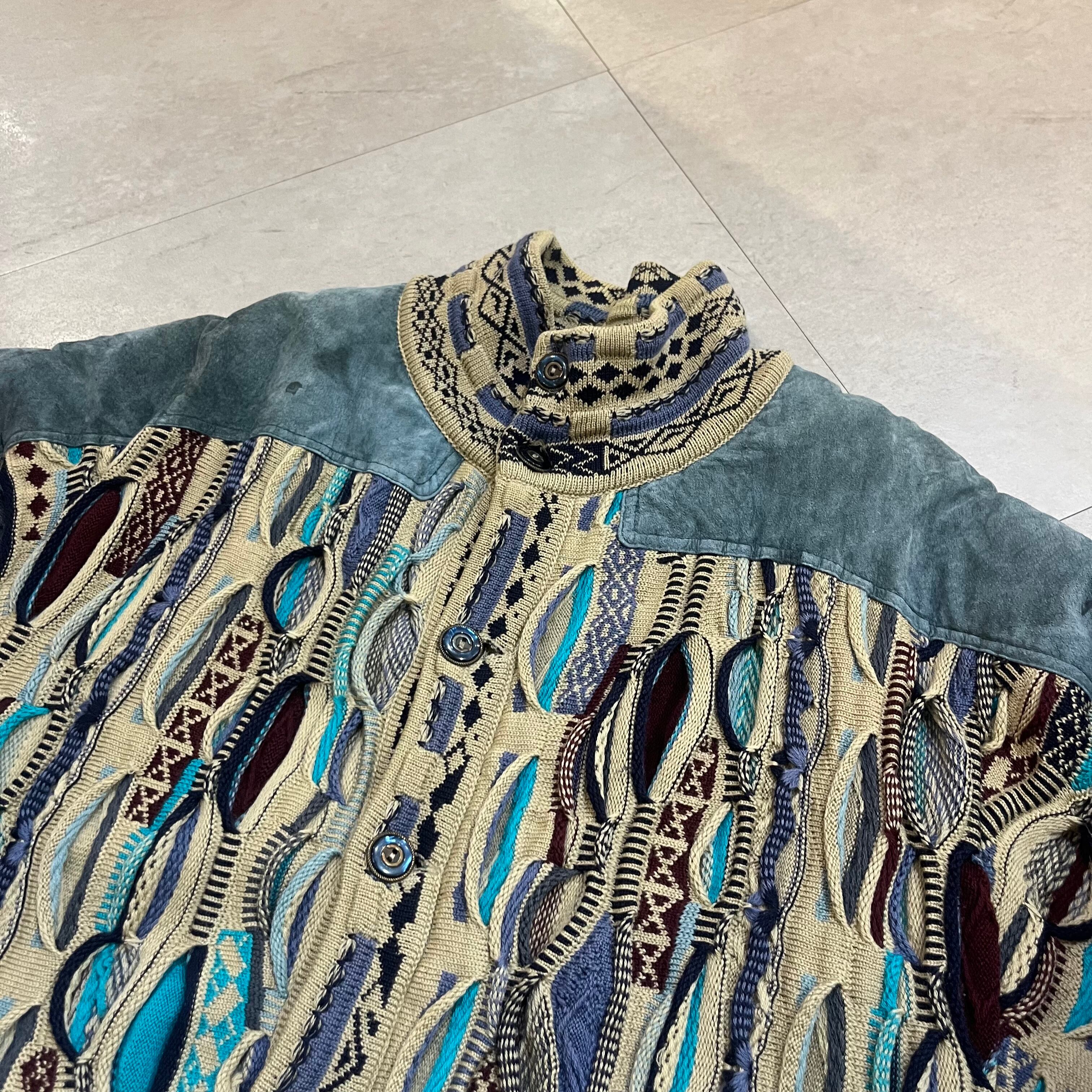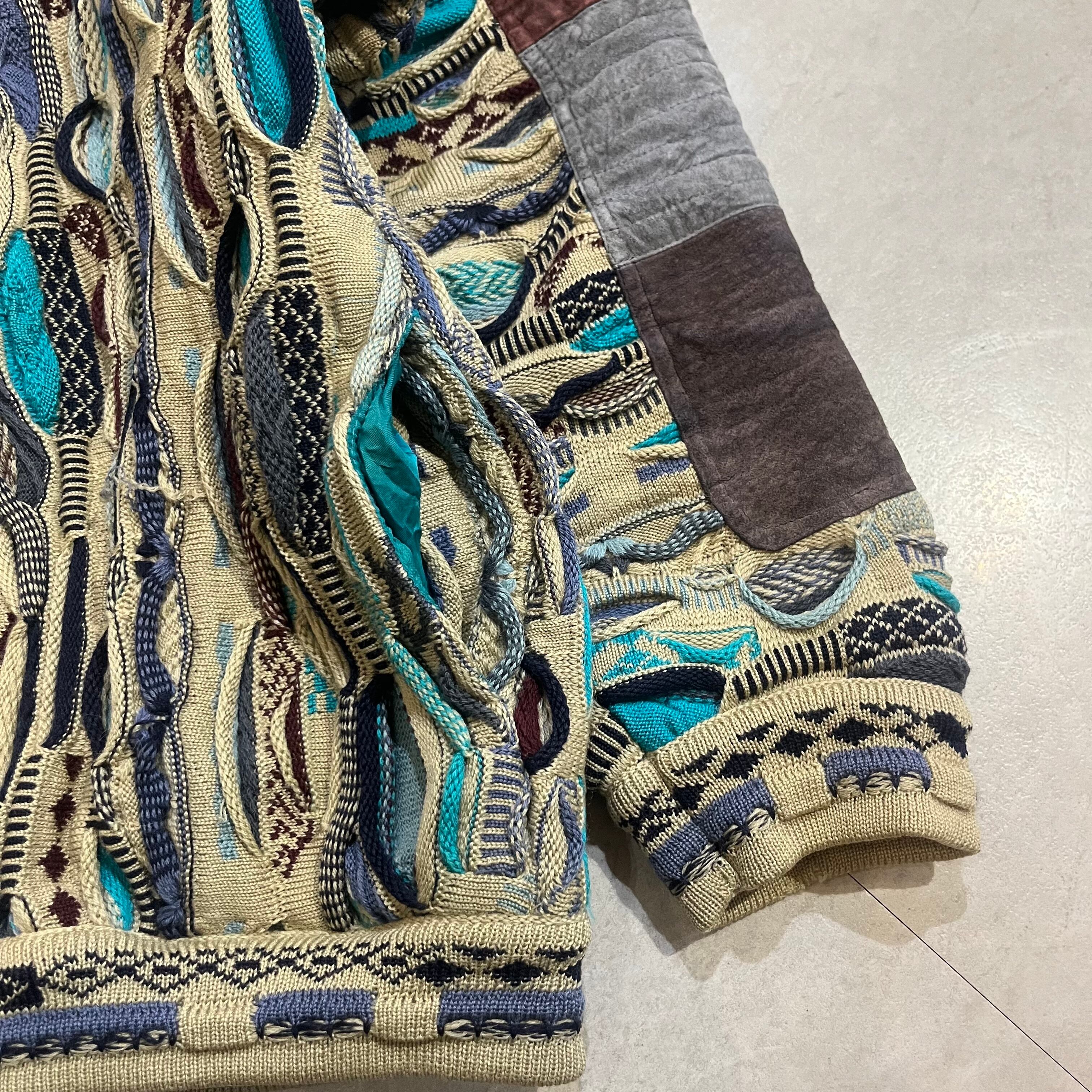 オーストラリア製 size:XL 【 COOGI 】クージー 3Dニット レザー切り替え マルチカラー ウール 古着 古着屋 高円寺 ビンテージ n41210