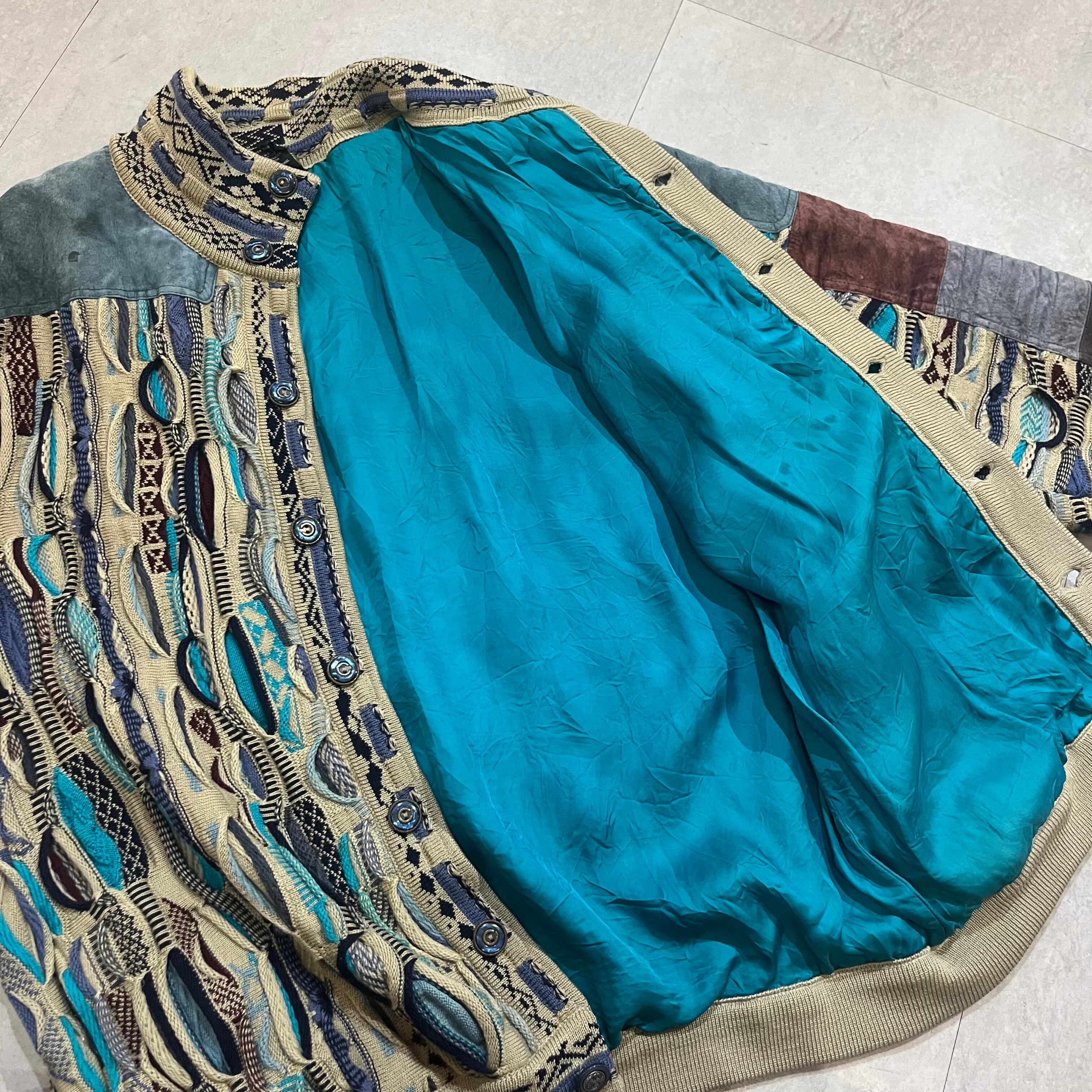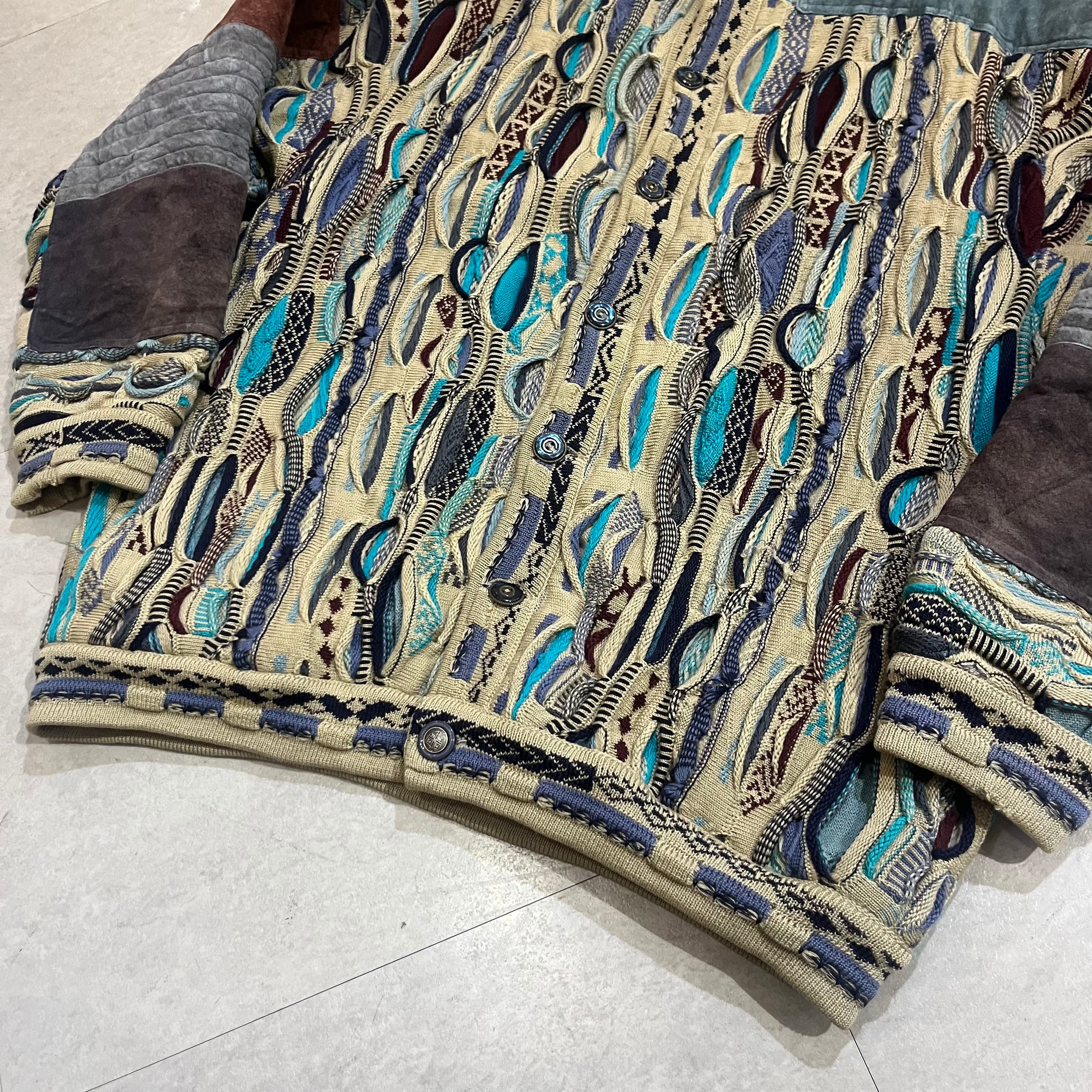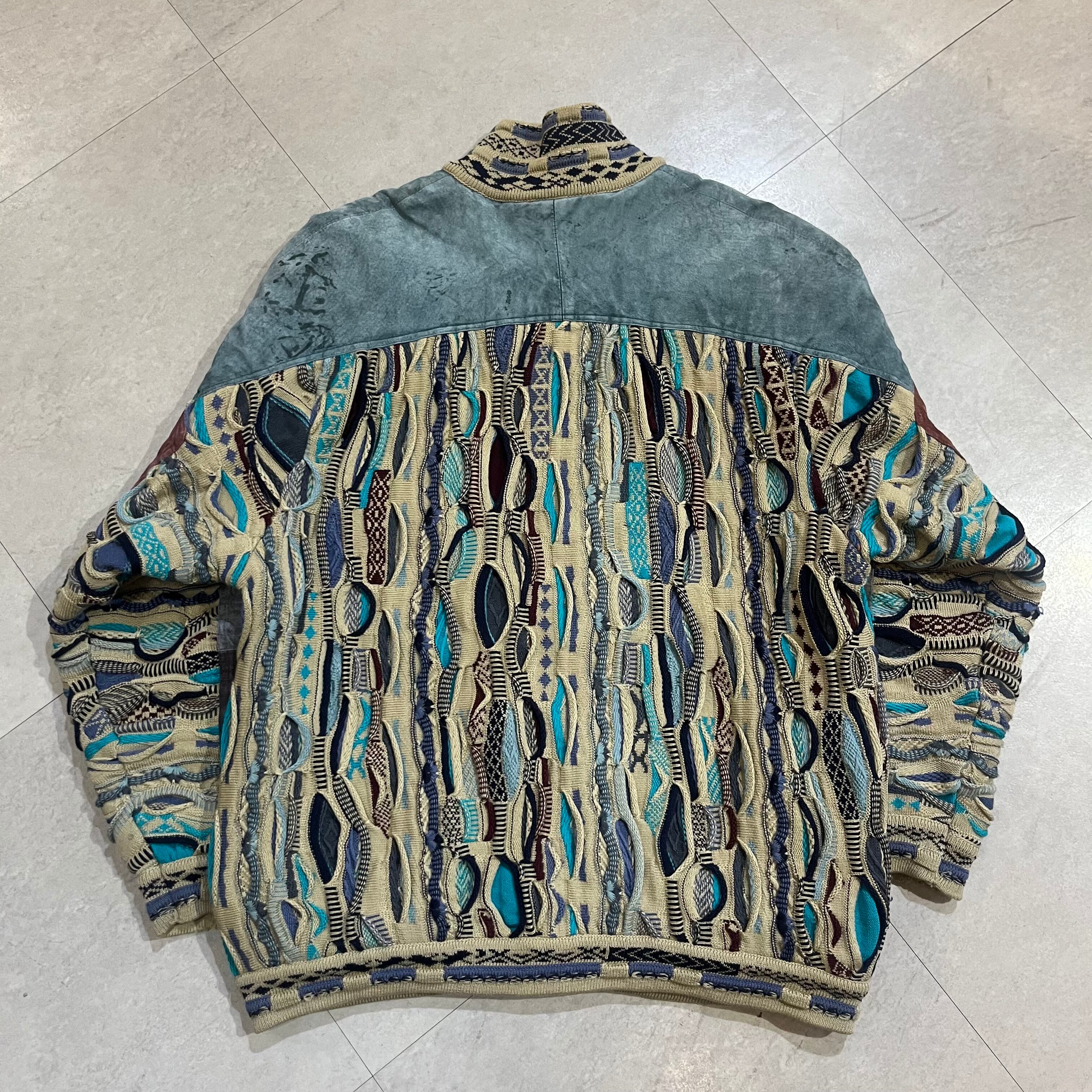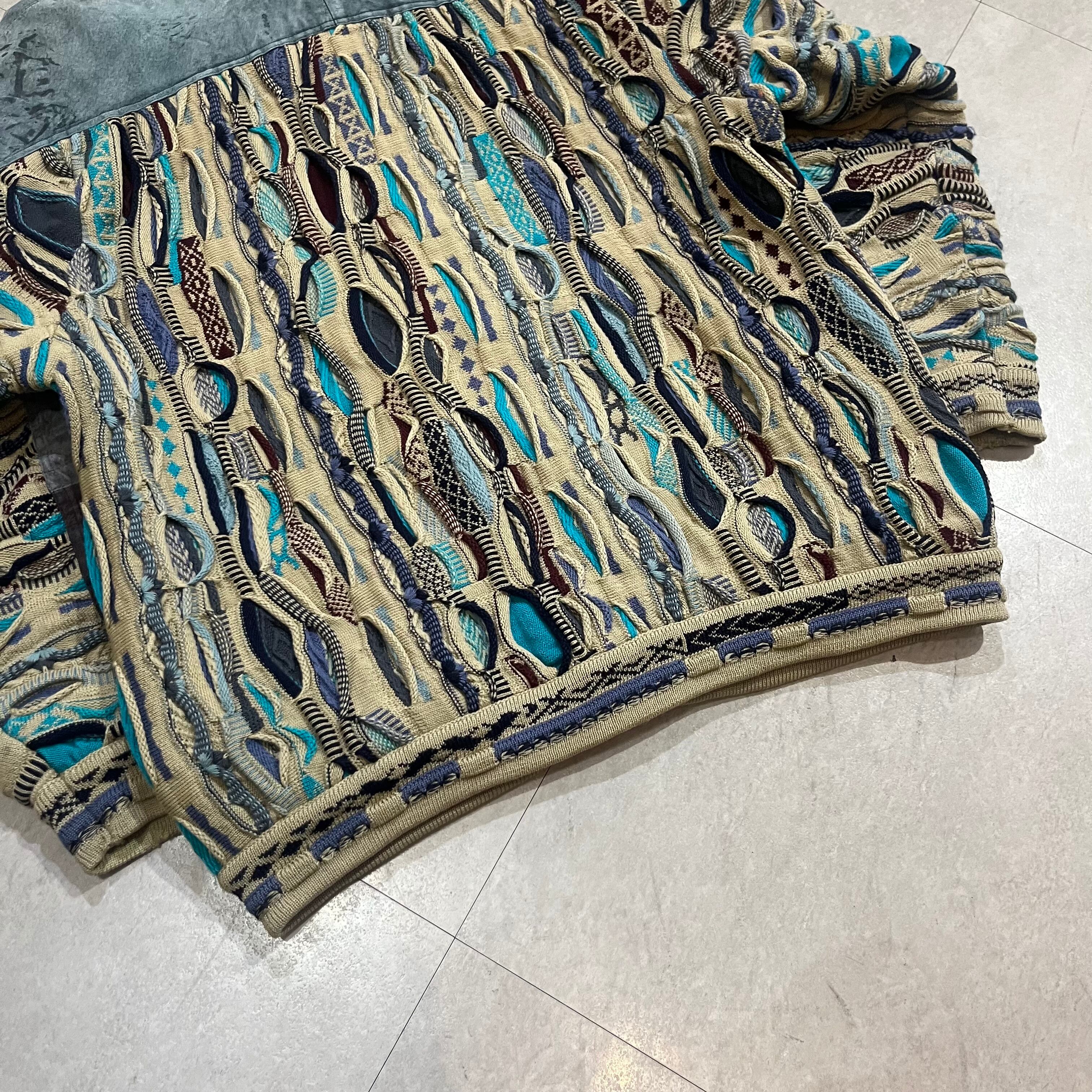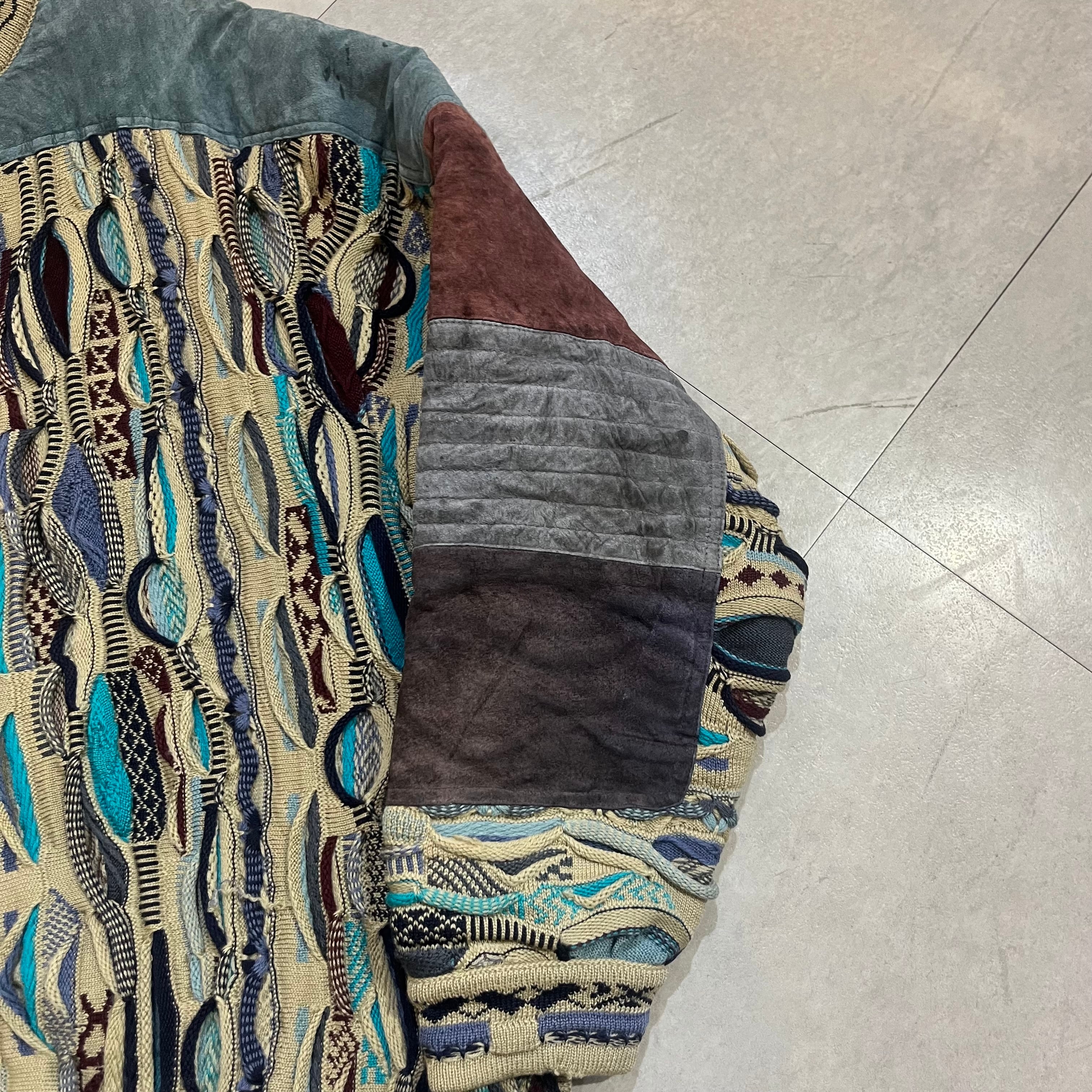 オーストラリア製 size:XL 【 COOGI 】クージー 3Dニット レザー切り替え マルチカラー ウール 古着 古着屋 高円寺 ビンテージ n41210