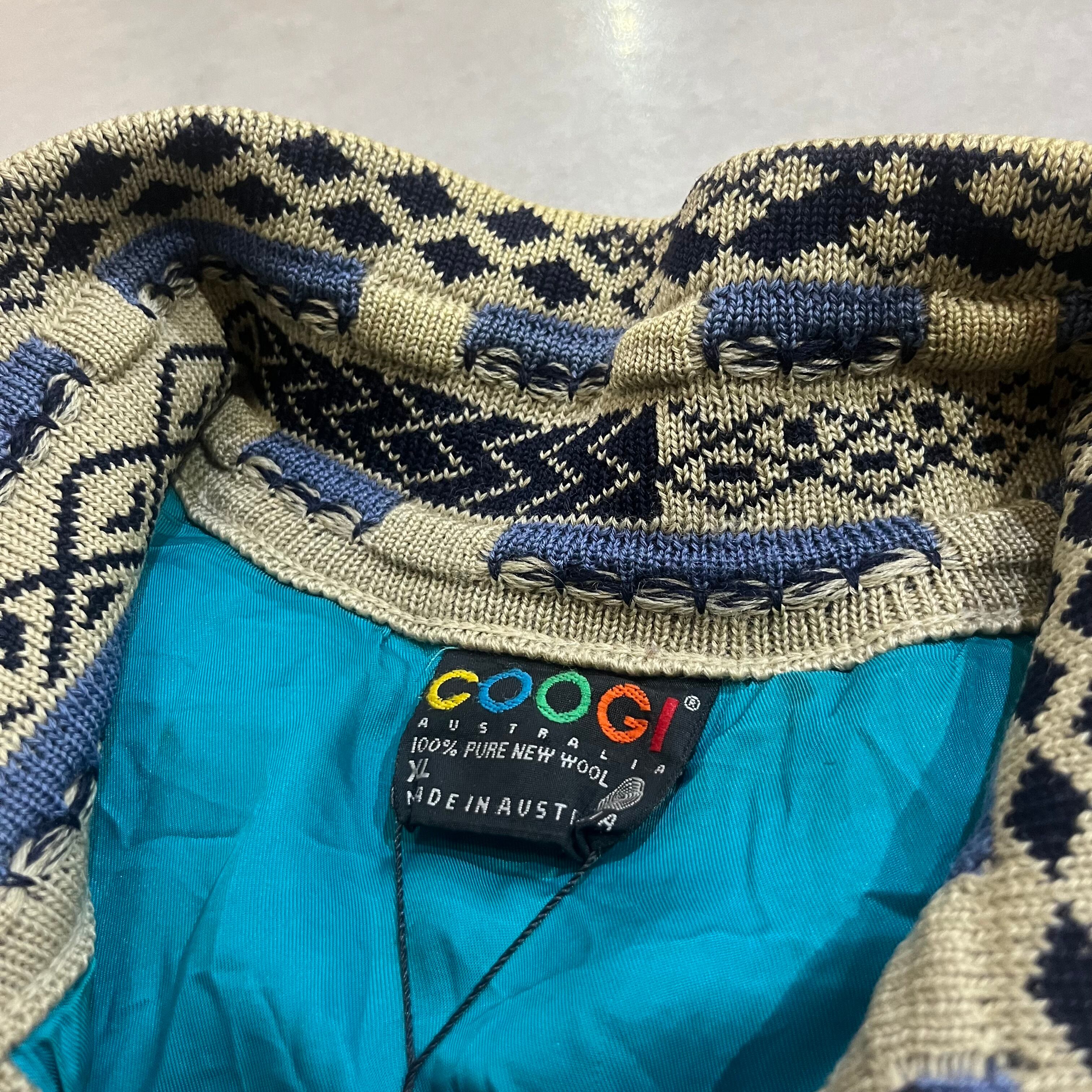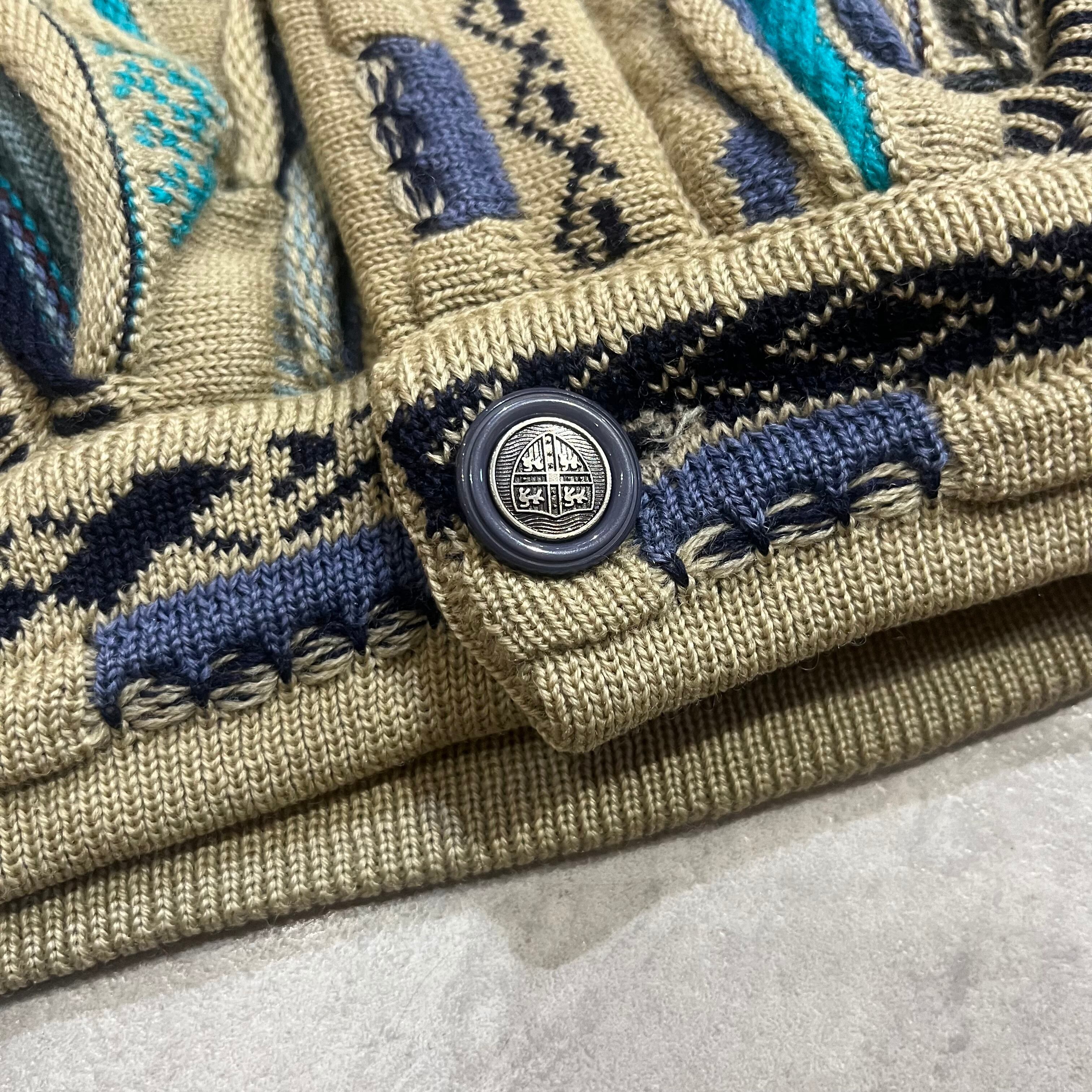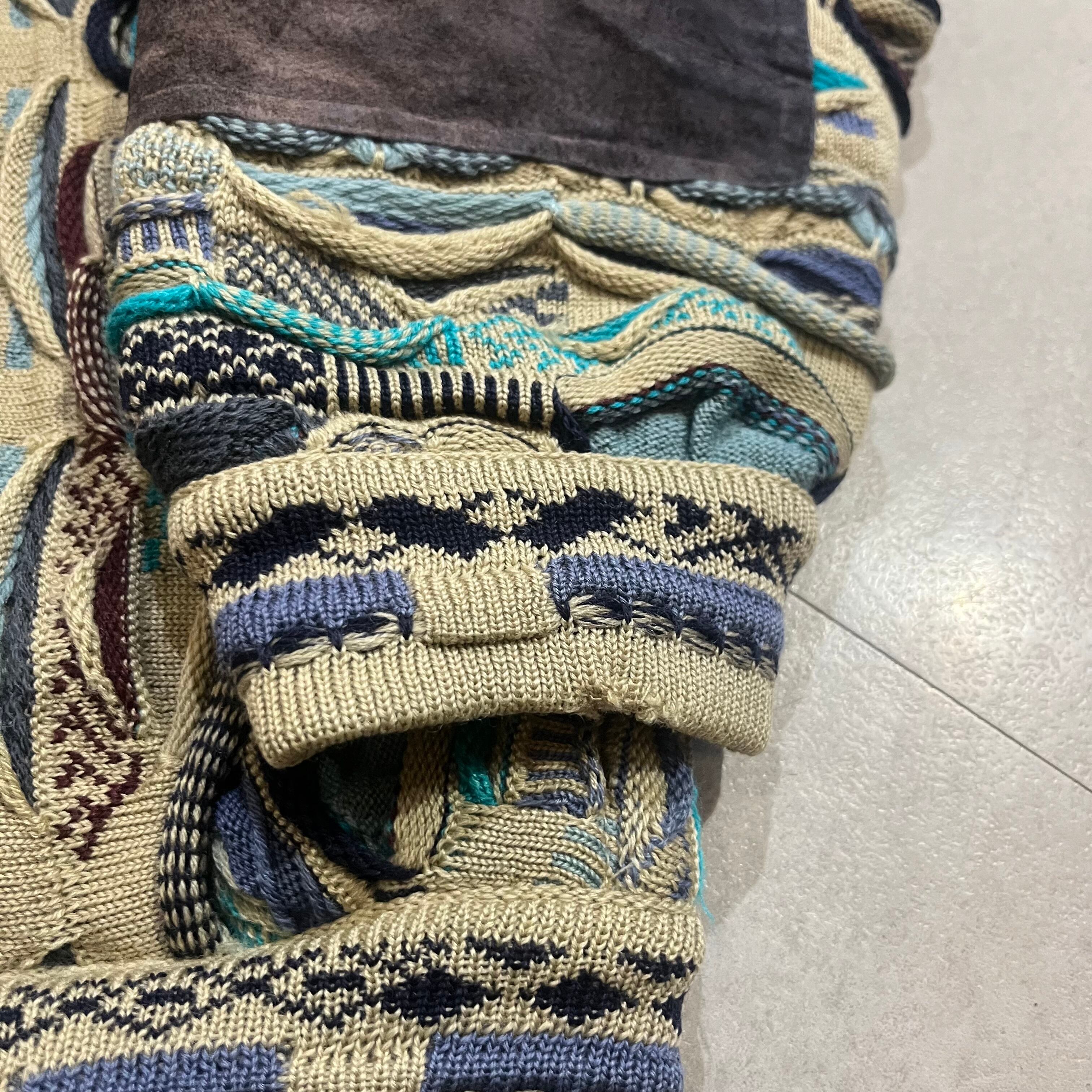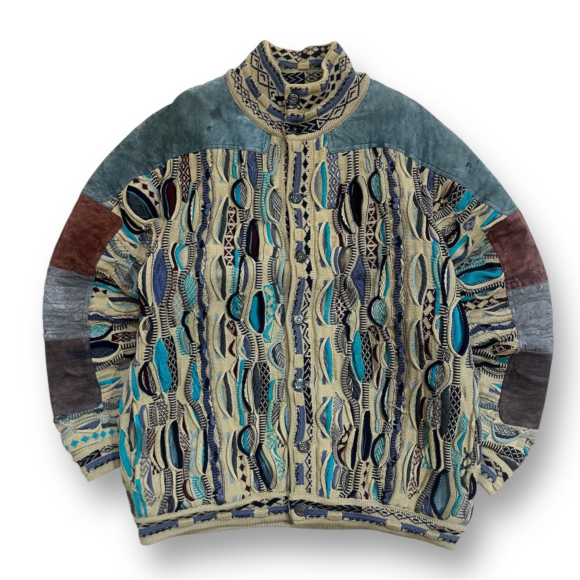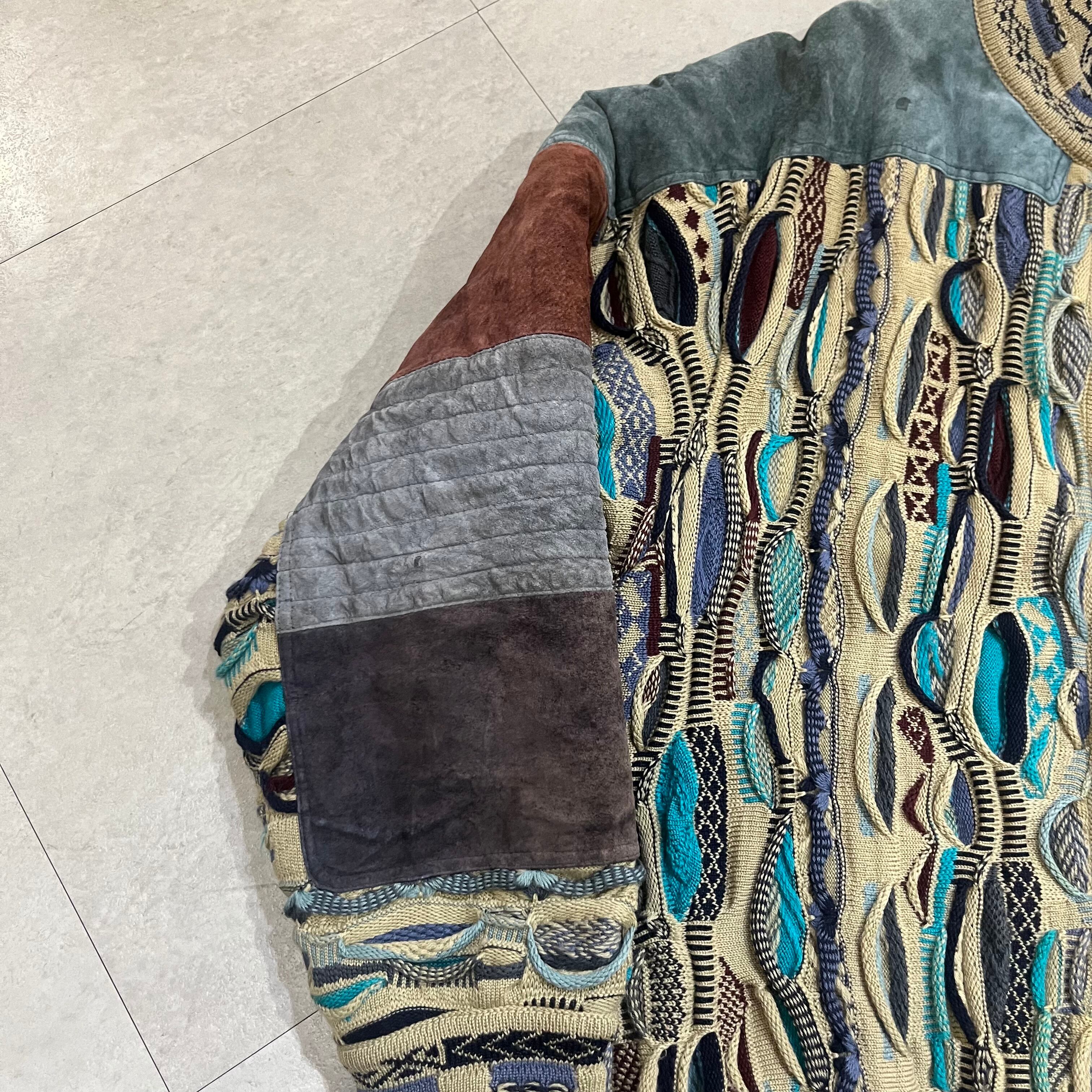 オーストラリア製 size:XL 【 COOGI 】クージー 3Dニット レザー切り替え マルチカラー ウール 古着 古着屋 高円寺 ビンテージ n41210