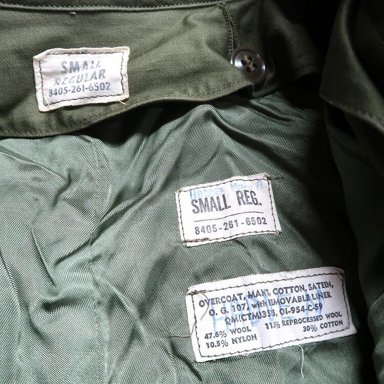 古着 50年代 US.ARMY M-1950 オーバーコート ライナー付き ミリタリー カーキ 米軍 表記:S-REGULAR gd404569n w50131