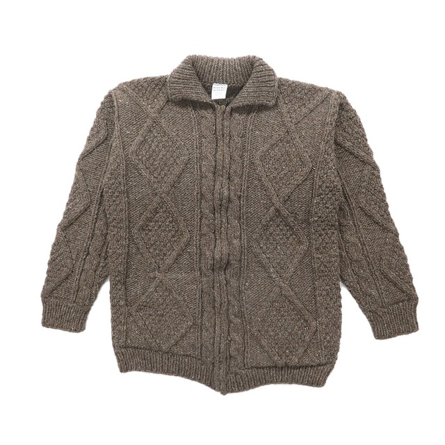 古着 アイルランド製 ARAN CRAFTS ジップアップ ウールニット ウールカーディガン アランニット セーター 表記:XL gd404545n w50127